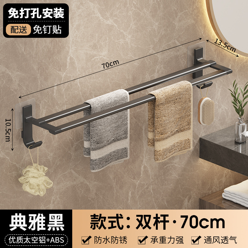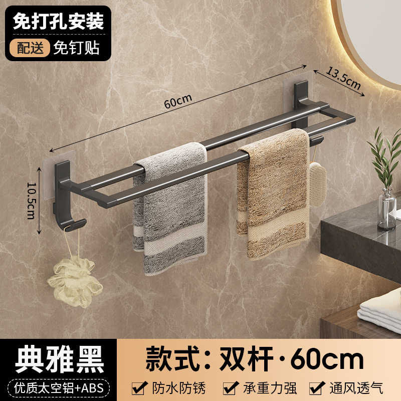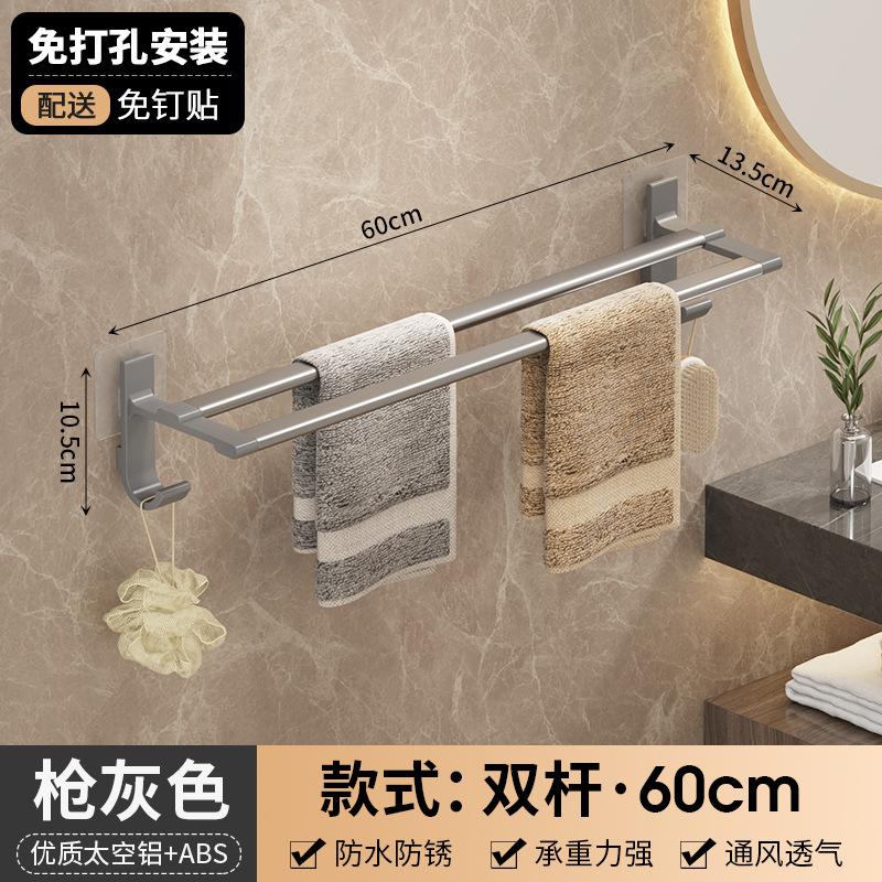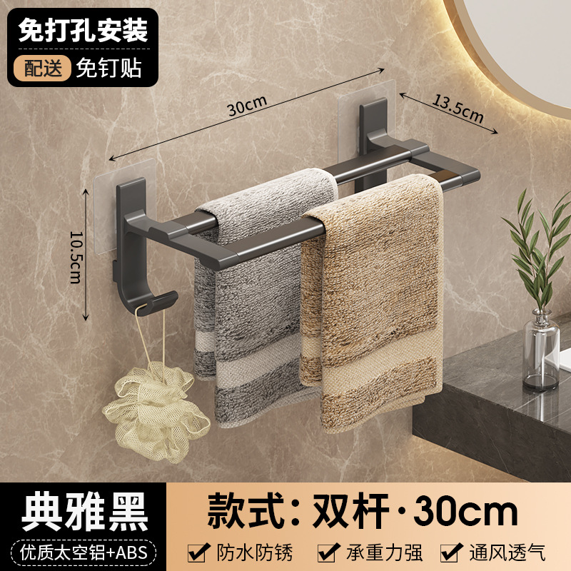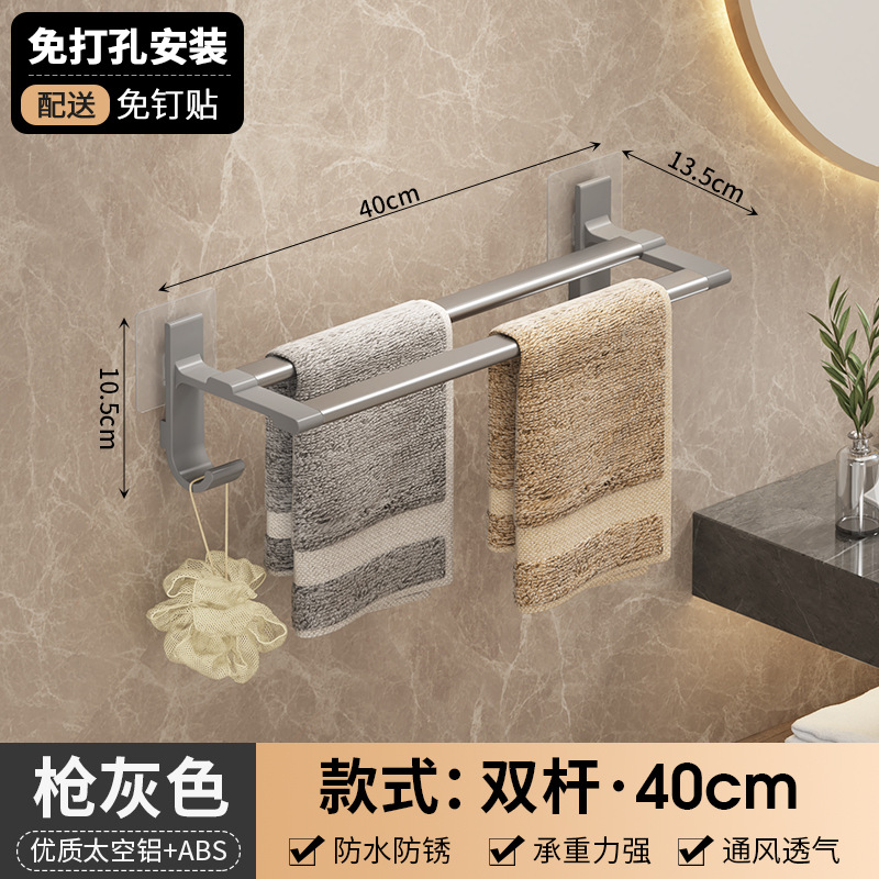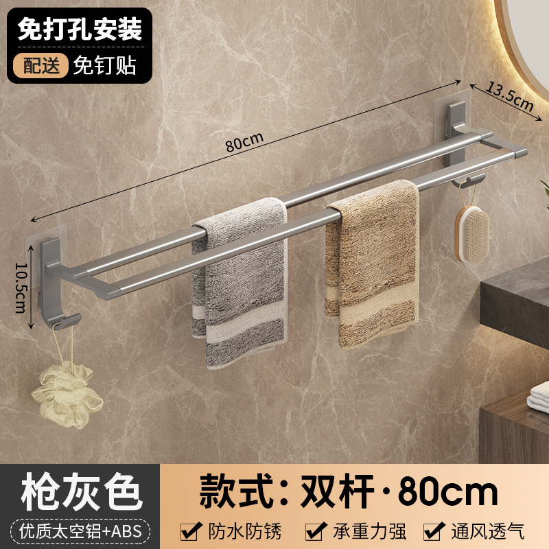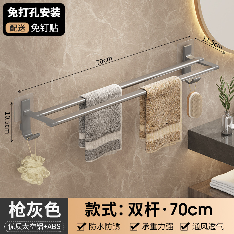 Non-perforated towel rack, bathroom wall-mounted towel pole, storage rack, toilet and washroom storage hanging rack