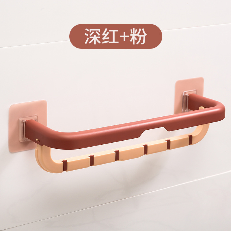 Non-punching towel rack, bathroom towel bar, foldable multi-functional small hook, double-layer bath towel rack for home use