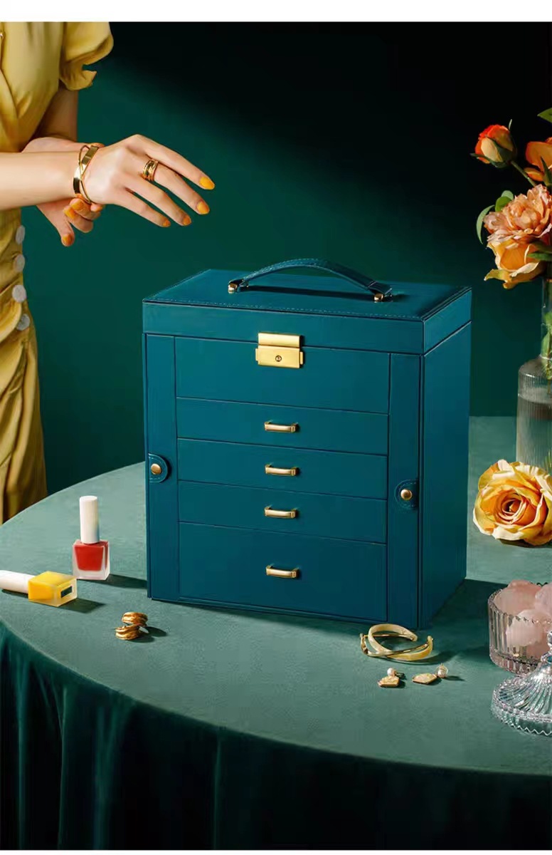 Nordic bestseller jewelry storage box, children's jewelry box, Amazon double-layer velvet drawer with lock, wooden jewelry box