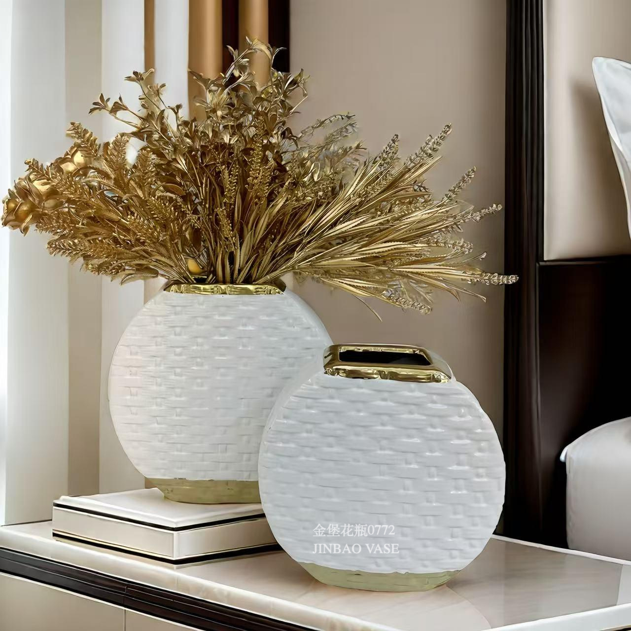 Nordic creative ceramic vases, rotating aesthetic ornaments, high-end living room entrance hall tabletop, dining table, dried flower decorations