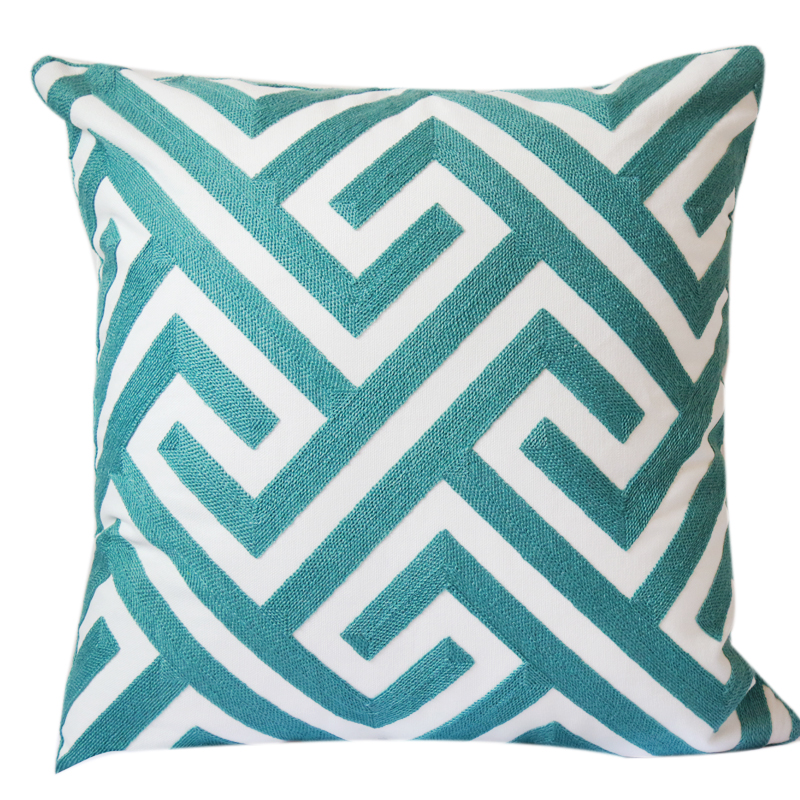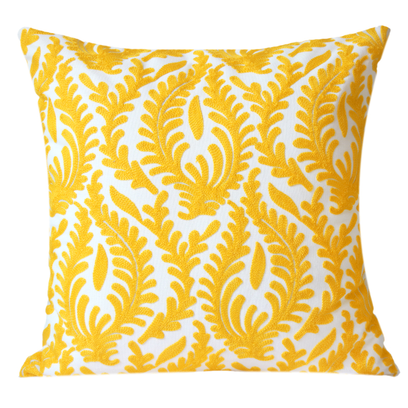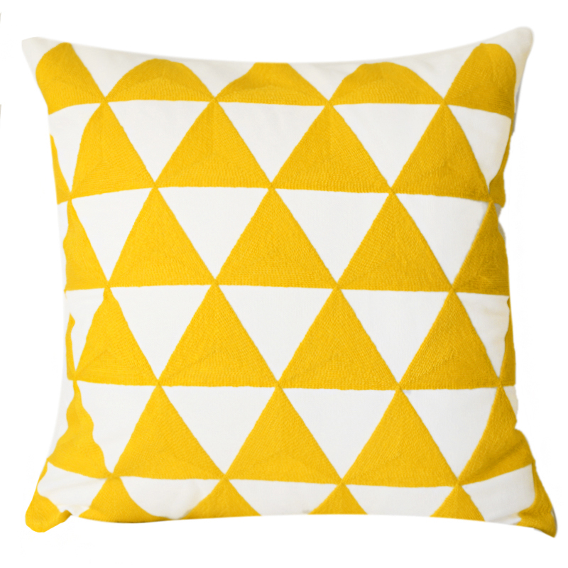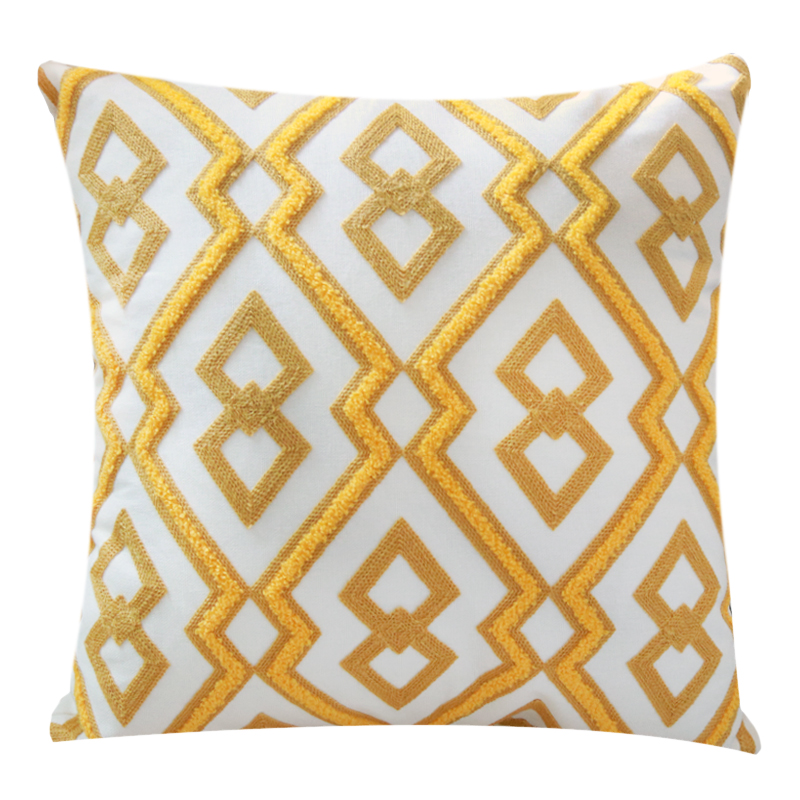Nordic geometric embroidered flower pillowcase model room, cotton and linen cushions, simple living room sofa, yellow bay window style pillow