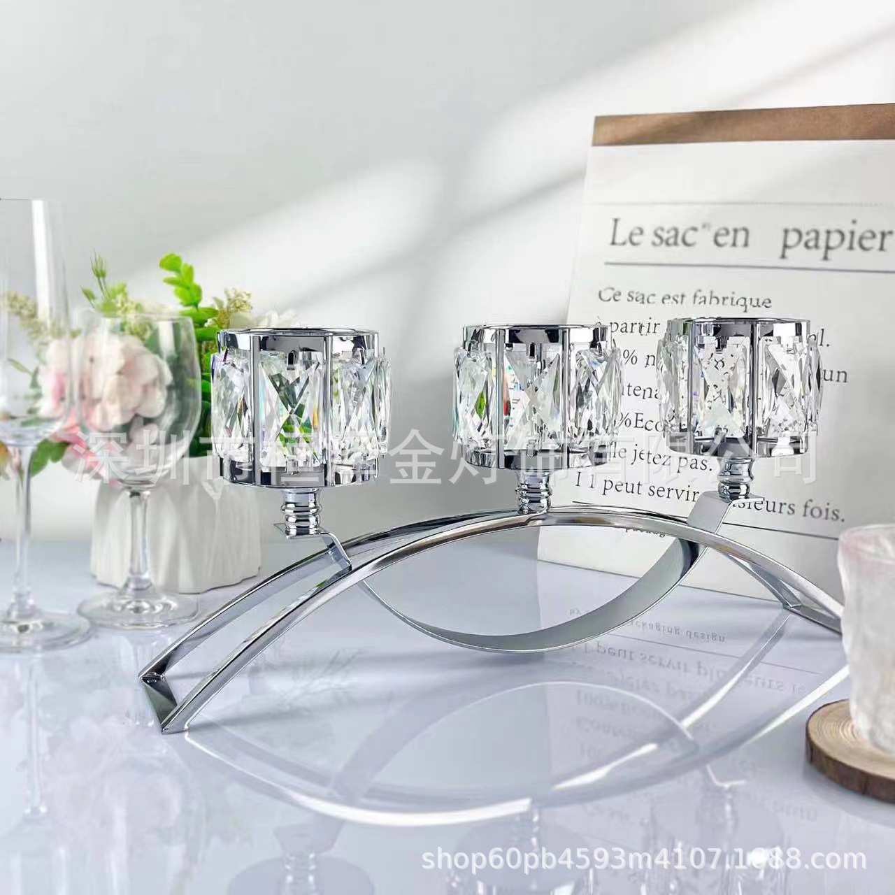 Nordic ironwork glass candlestick dining table, home decoration, romantic candlelight dinner props, wedding three-headed candles