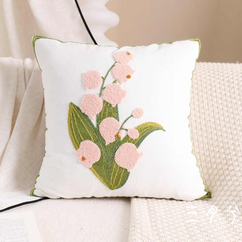 Nordic living room solid-color throw pillows, European-style light luxury woven flower pillowcases, original heavy industry model room soft furnishing cushions