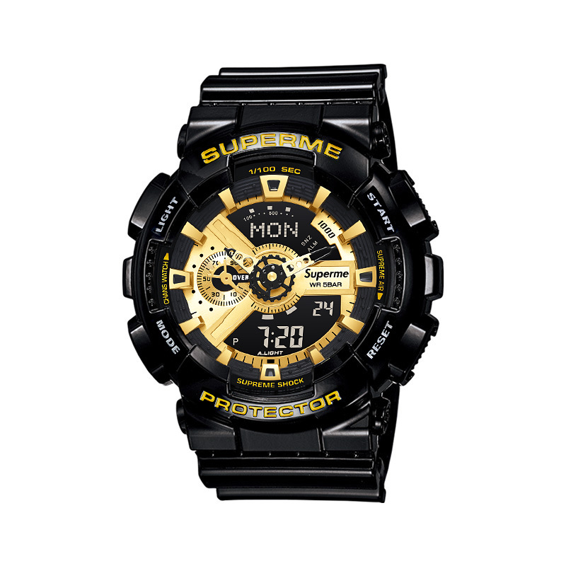 Official genuine men's small gold and silver block gold brick co-branded small square men's waterproof sports electronic watch