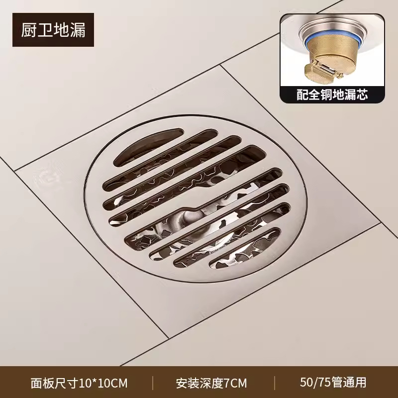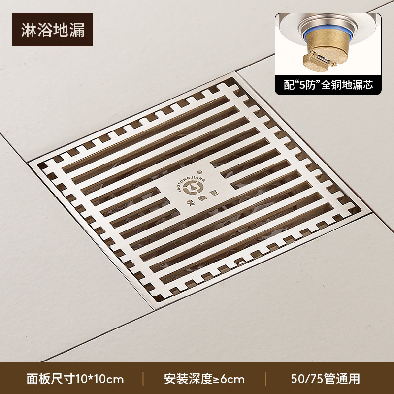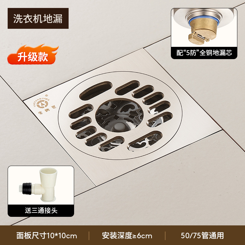 Old Coppersmith pure copper floor drain, cream wind large flow volume floor drain, washing machine, bathroom, shower, all-copper floor drain, anti-odor