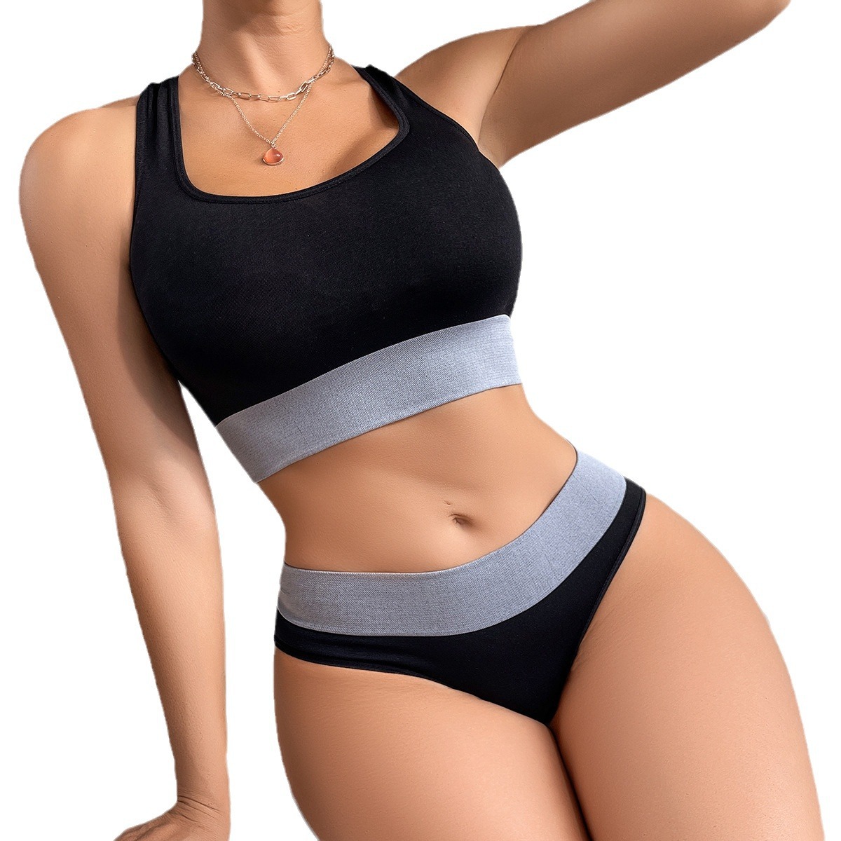 Olivia's Night Cross-border new women's seamless bra Set, sporty and casual color combination, soft and comfortable European-sized seamless set for women