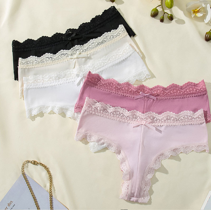 Olivia's Night Lace Underwear Women's cross-border sexy mid-waist comfortable high-elastic bow pure cotton crotch large breathable women's triangle pants