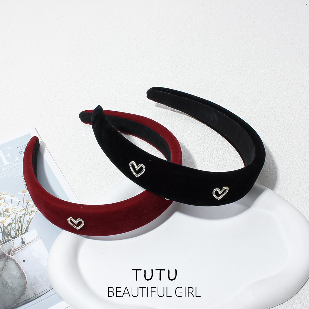 Korean-style, heart-shaped, retro velvet rhinestone hair band, internet-famous, high-end headband, women's hair pressing, face washing, hair hole, hair accessory