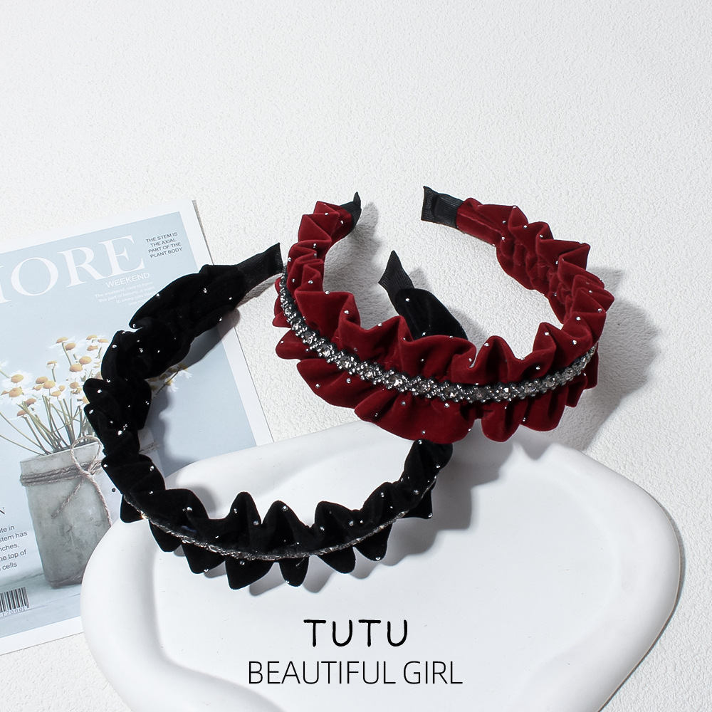 High headband for the top of the head, with a high-end feel, rhinestone crease effect, groin, velvet, small chanel-style headwear, face-washing and hair-pressing headband, hair accessory