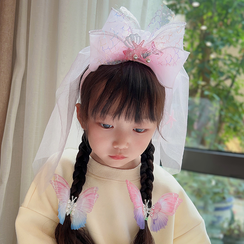 Spring and summer high-end hair band, Japanese and Korean super fairy mesh gauze art headwear, women's bow, hair hole headwear, hair band, hair clip