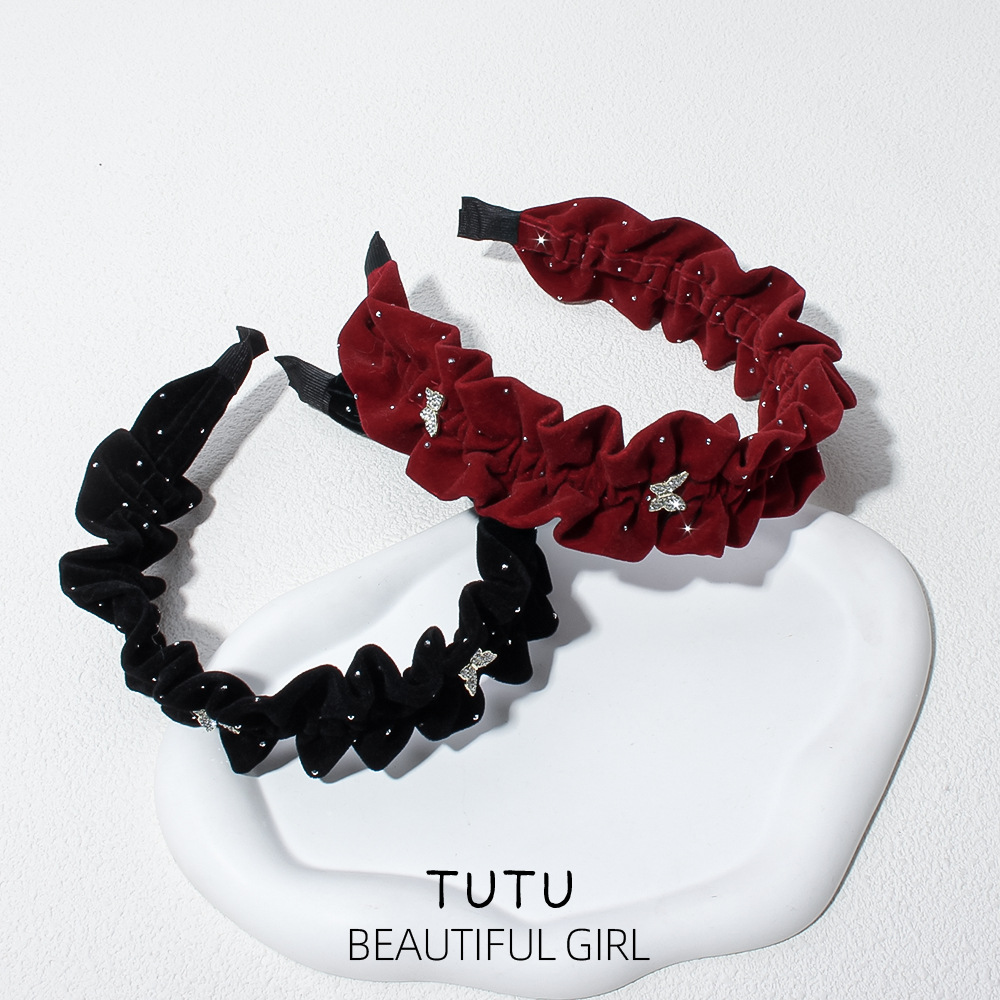 Red velvet butterfly-dot diamond hair band for women, ins high-end hair accessory, high top of the head pressure hair band, face wash hair clip