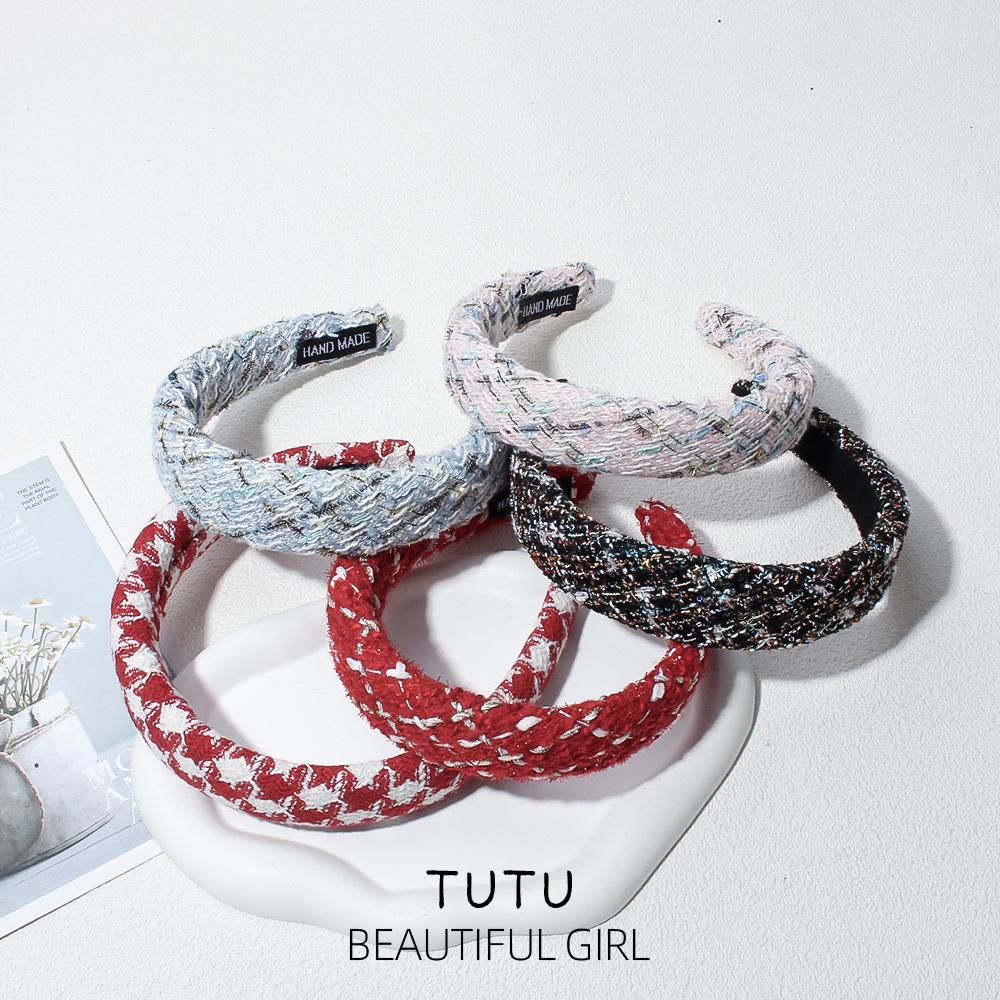 Red hairband women's ins high-end headband, checkered small chanel-style high top hairpin headpiece, face wash hair hole hair accessory