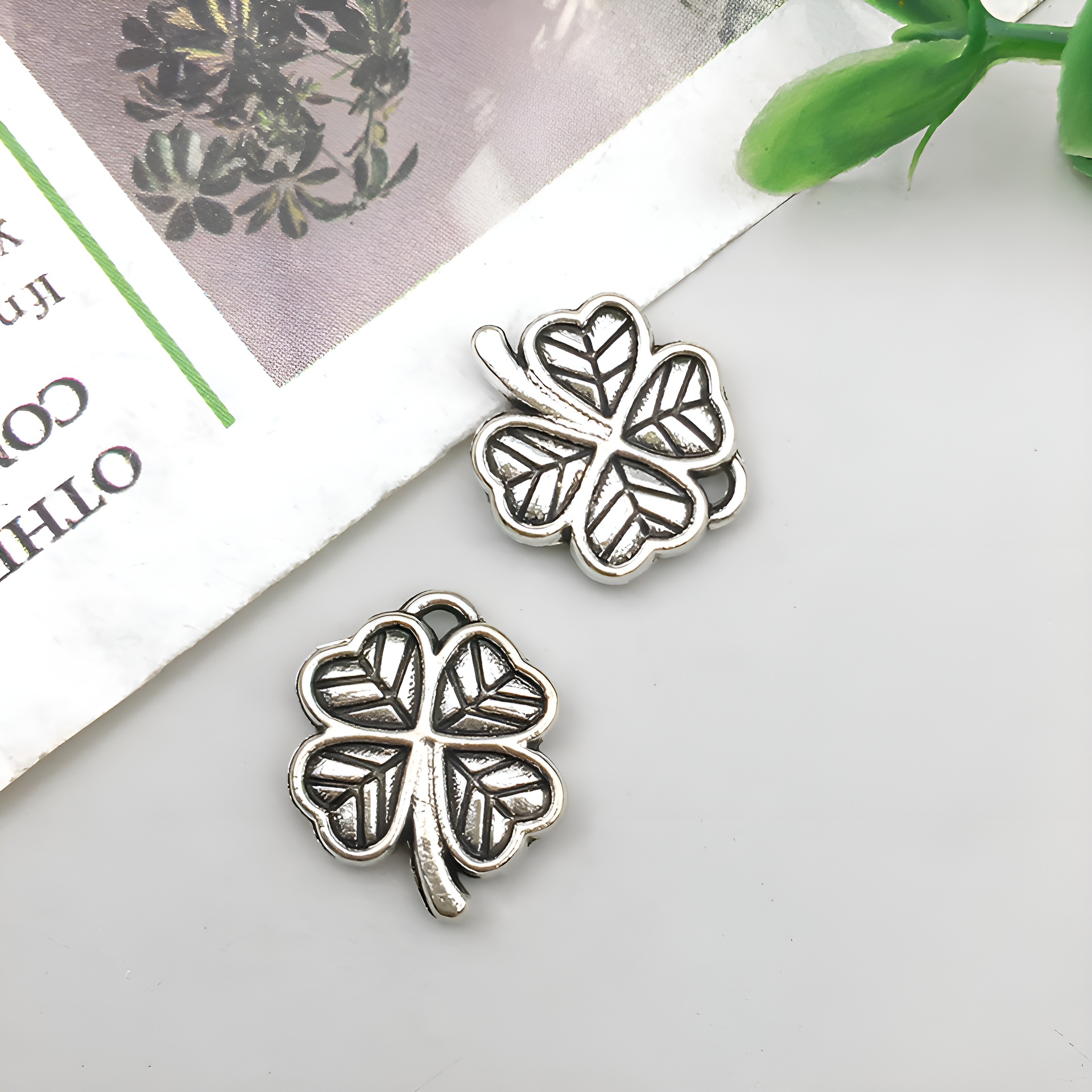 Mix 22 ancient silver four-leaf clovers -11 types, 2 pieces of each type -23g-SN261