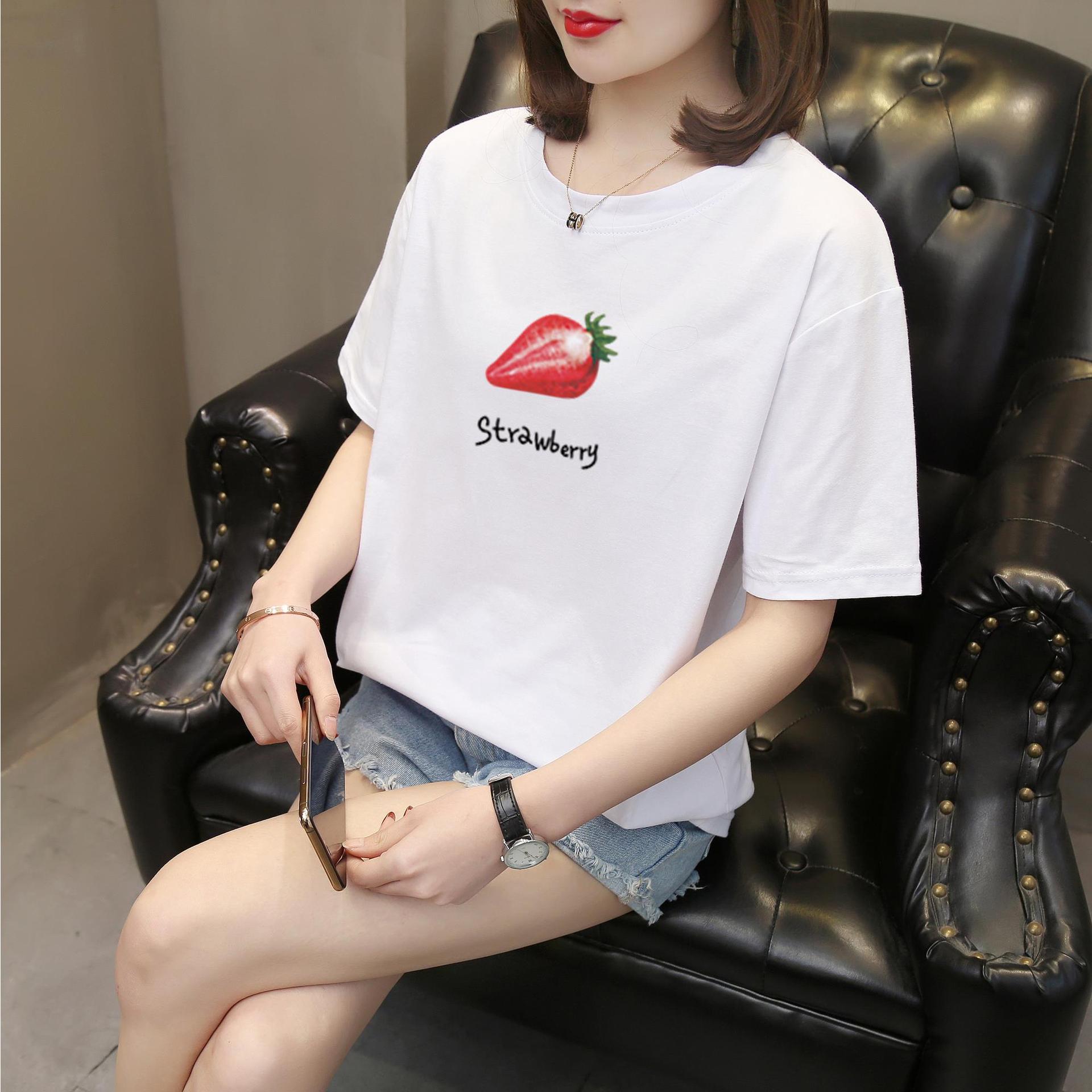 One-piece consignment for 2024 summer pure cotton short-sleeved T-shirts for women, strawberry-printed top, round-neck, plus-size women's fashion
