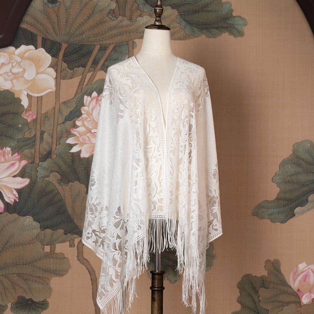 One-piece consignment for air-conditioned rooms in 2025, thin office summer shawl, women's hollowed-out autumn and winter fashion outerwear, cheongsam, white cape style, street stall wholesale