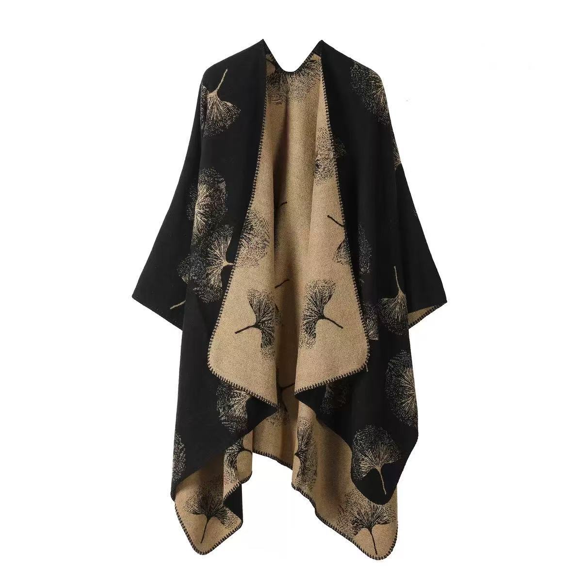 One-piece consignment of new ginkgo leaf slit shawl for women, autumn and winter warm cape, ethnic style outerwear, double-sided high-end cape wholesale at street stall