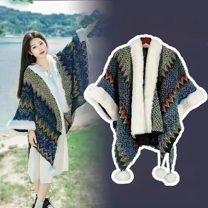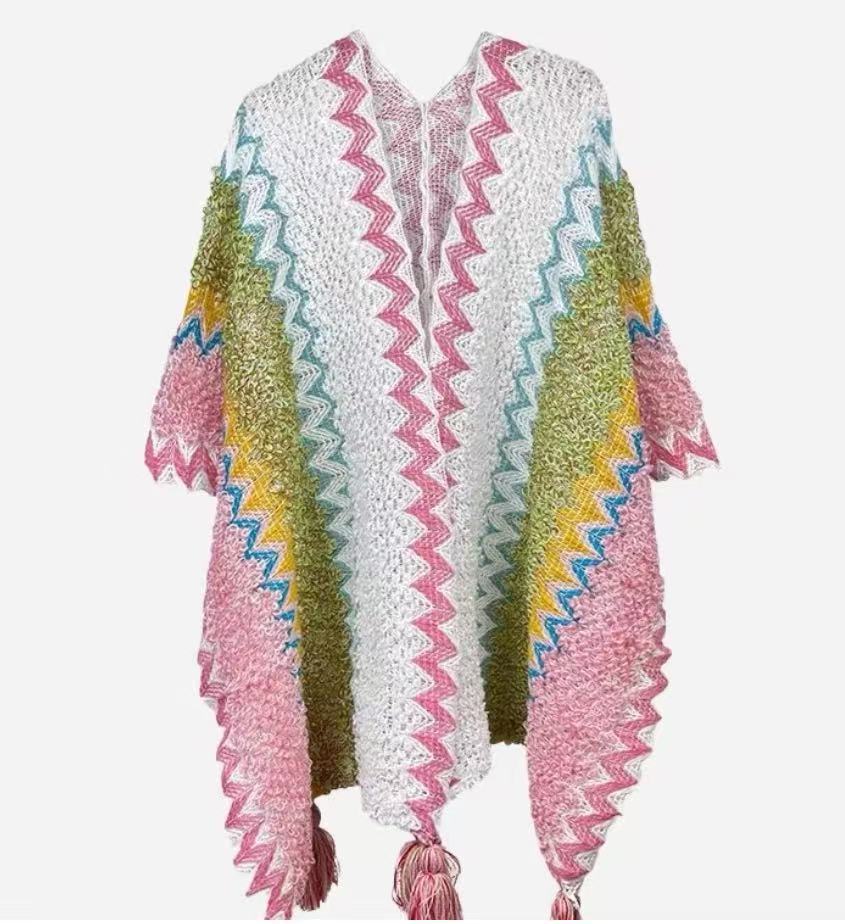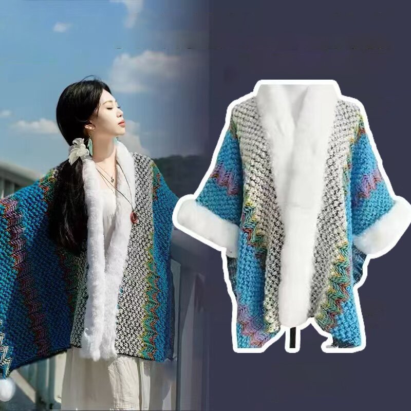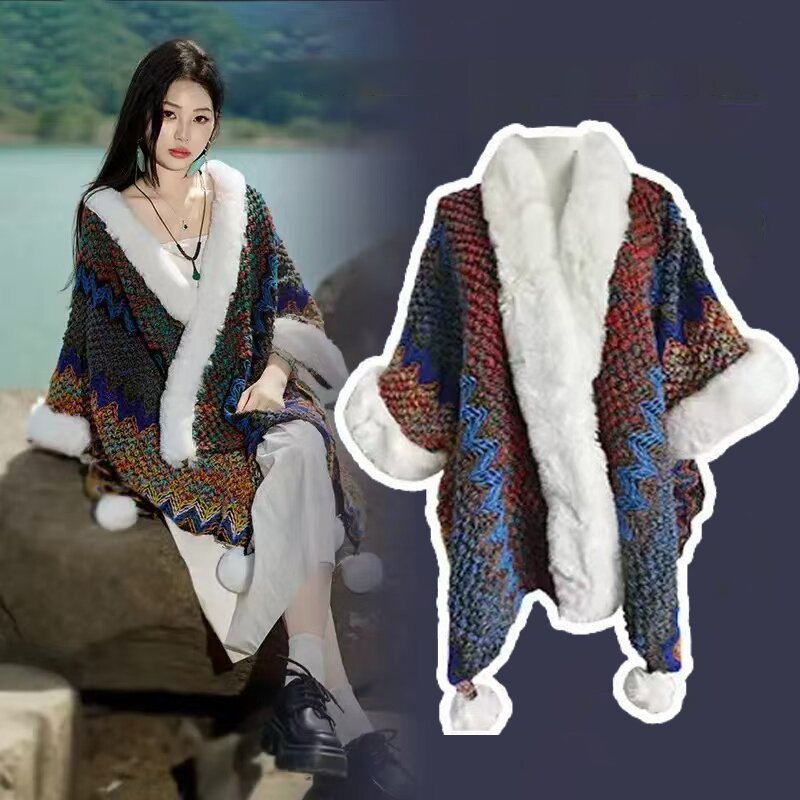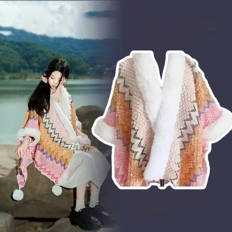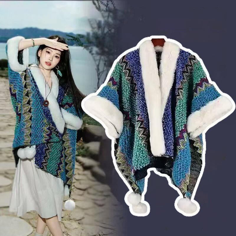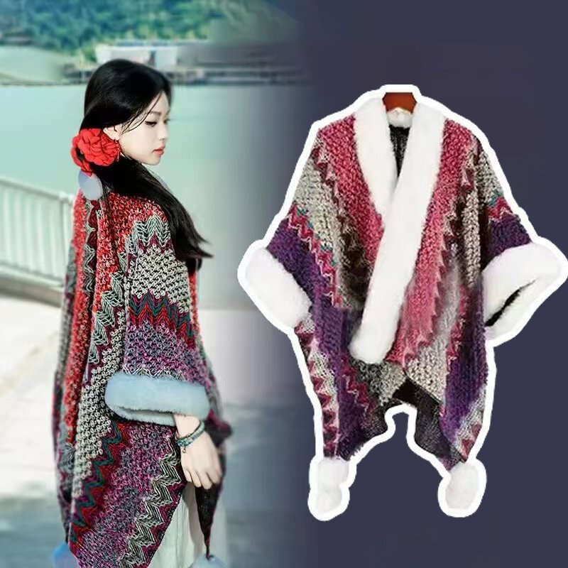One-piece consignment summer Lijiang retro ethnic style shawl for women, Xinjiang and Yunnan travel outerwear cape, cape coat, dual-purpose scarf, street stall wholesale