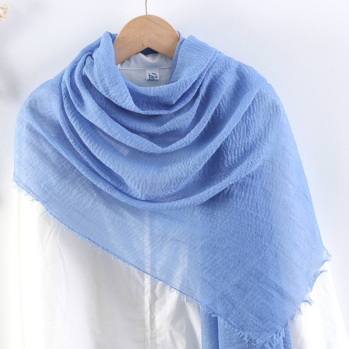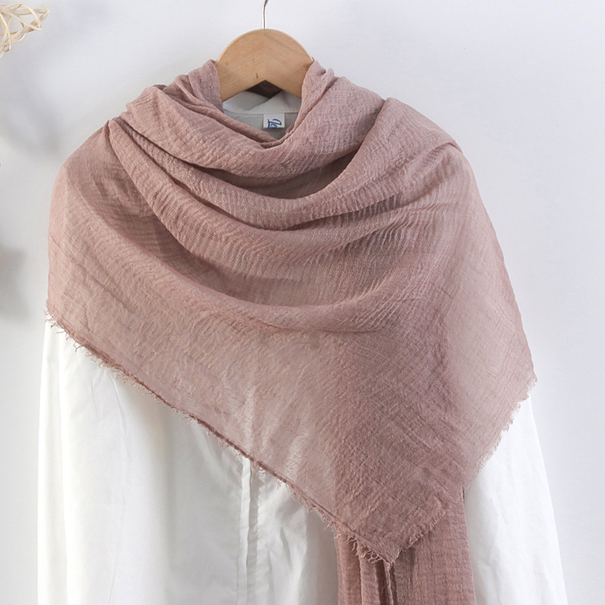 One-piece delivery of solid-color pleated silk scarves, soft and elegant, long cotton and linen hand feel scarves and shawls, factory direct supply for women