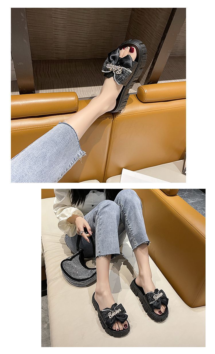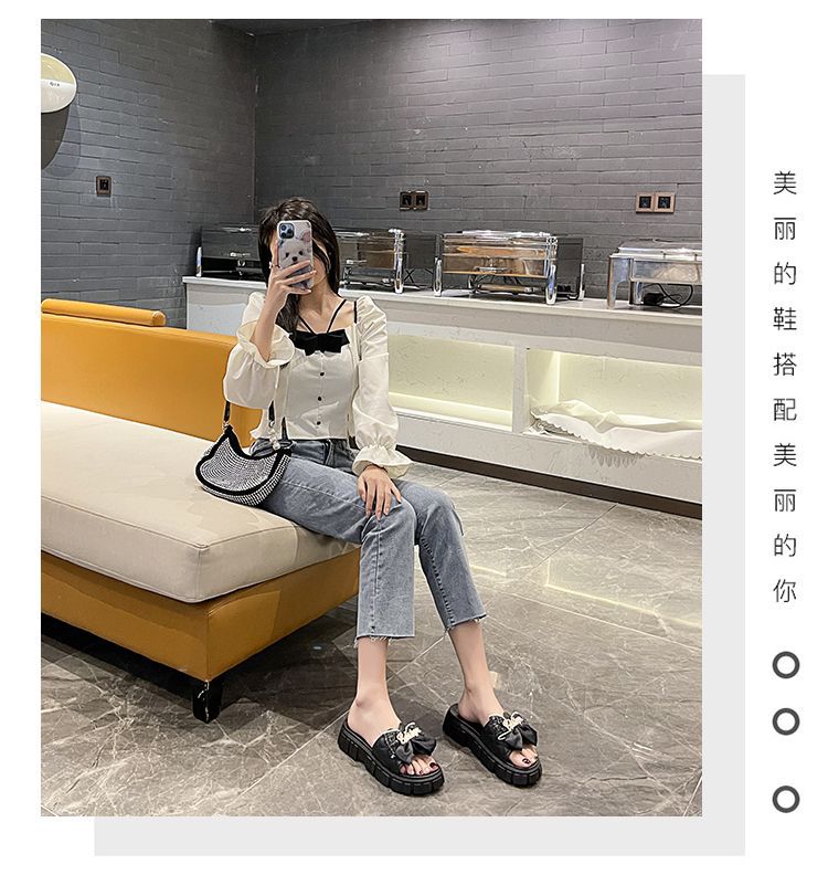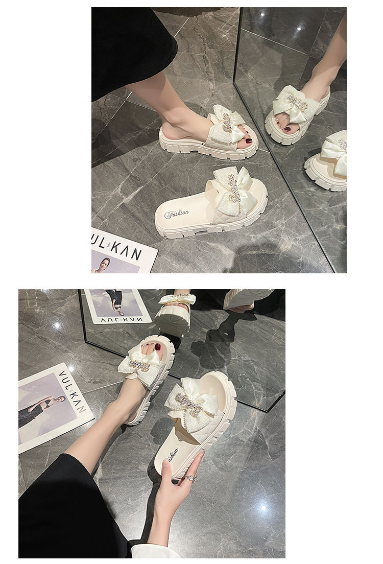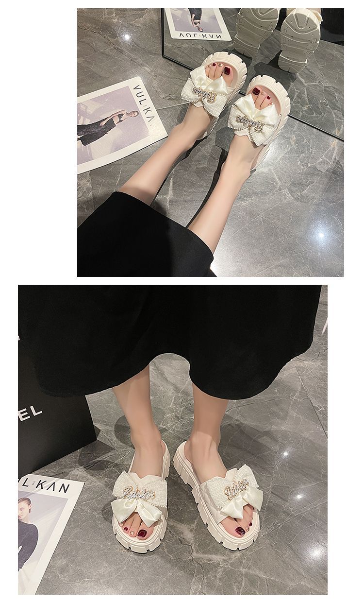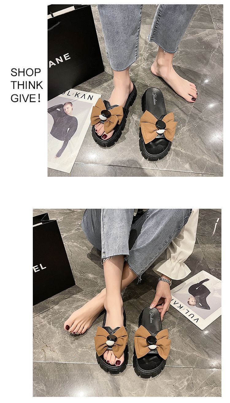 One-piece flip-flops for women's outerwear in summer 2023, thick-soled bow, popular home anti-slip cooling flip-flops for cross-border use