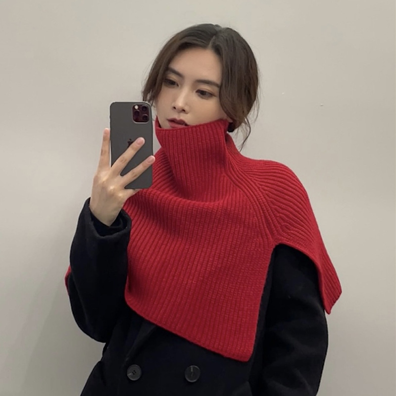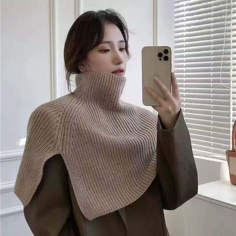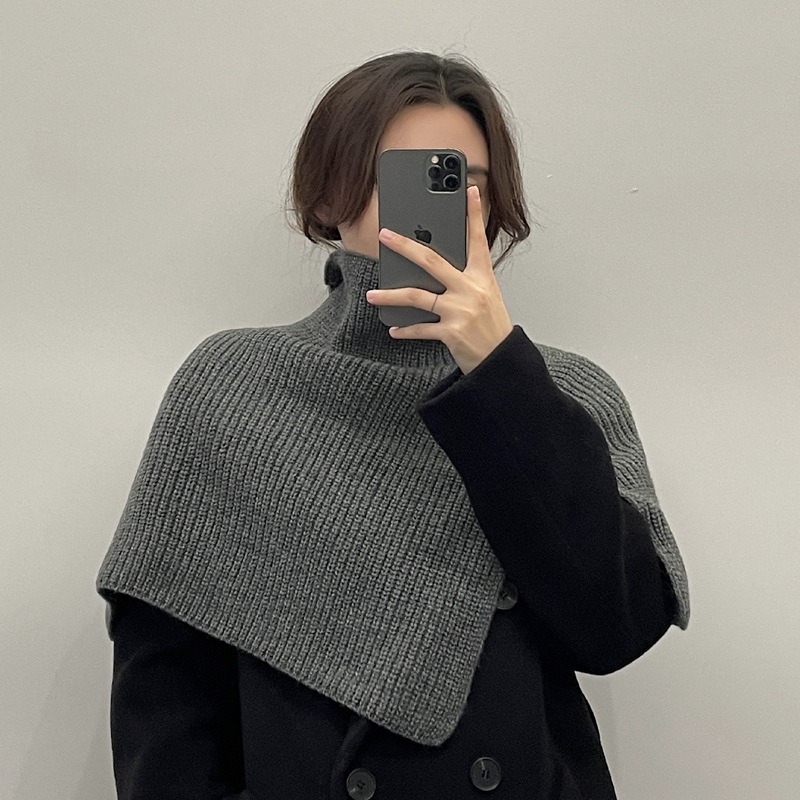 One-piece high-neck pullover Korean-style scarf for women's winter warmth, high-end shawl, versatile scarf, solid color new knitted neck collar wholesale at street stalls