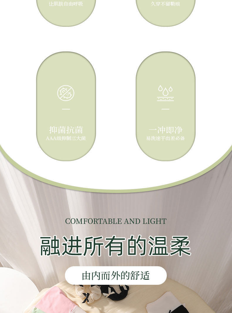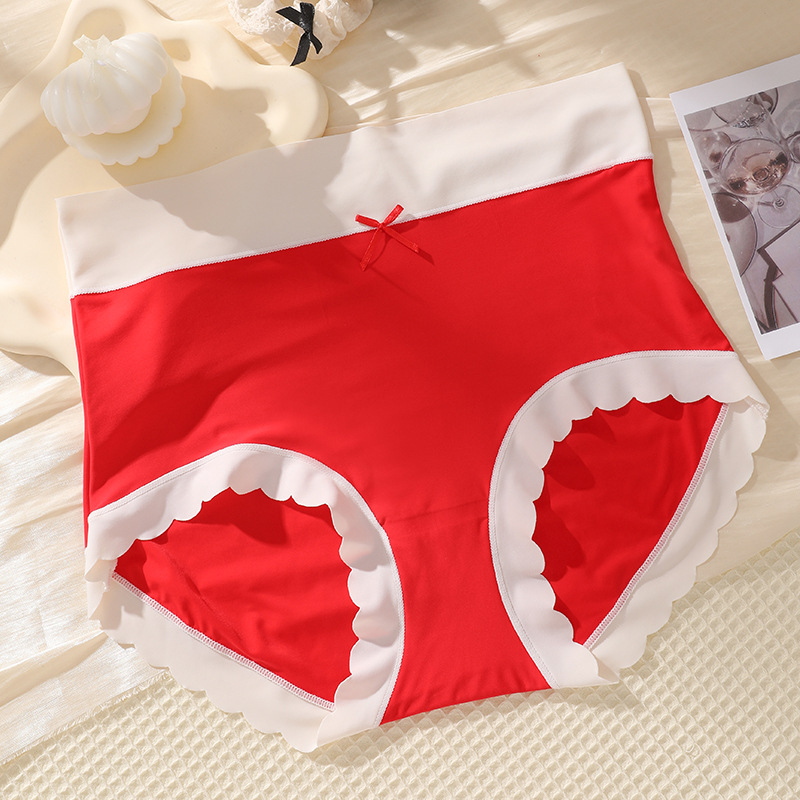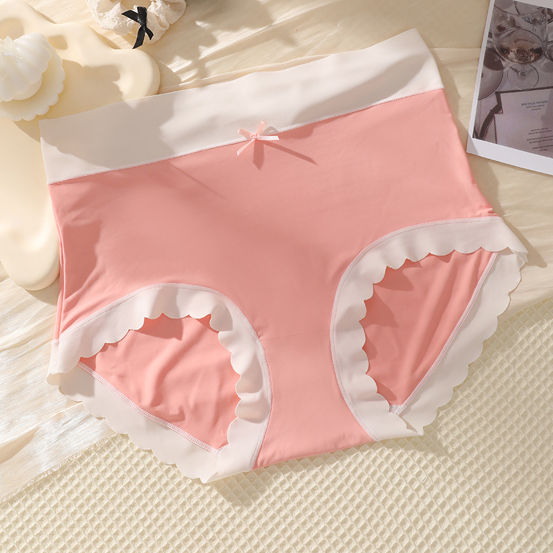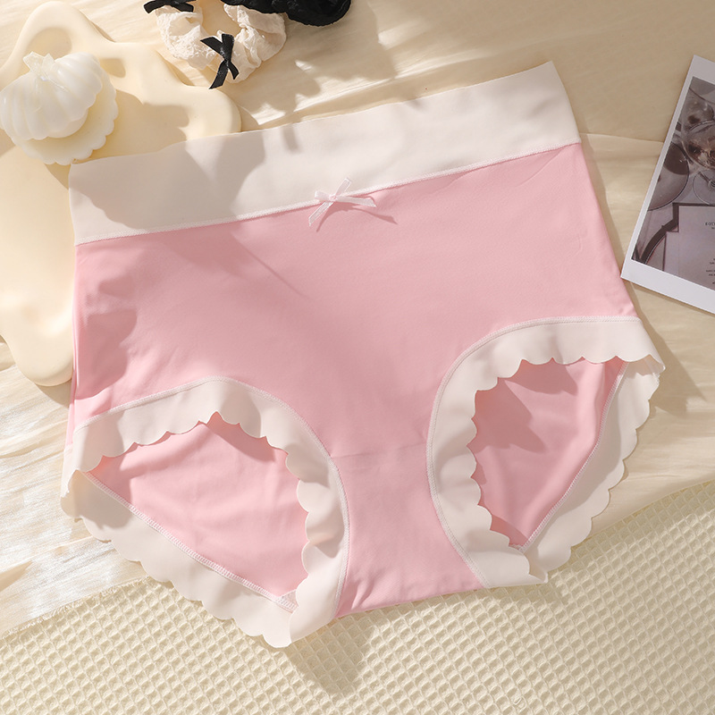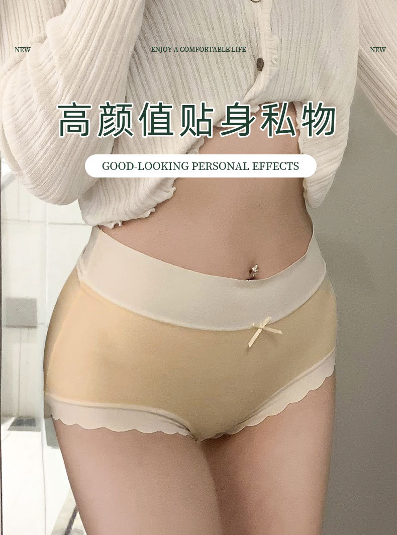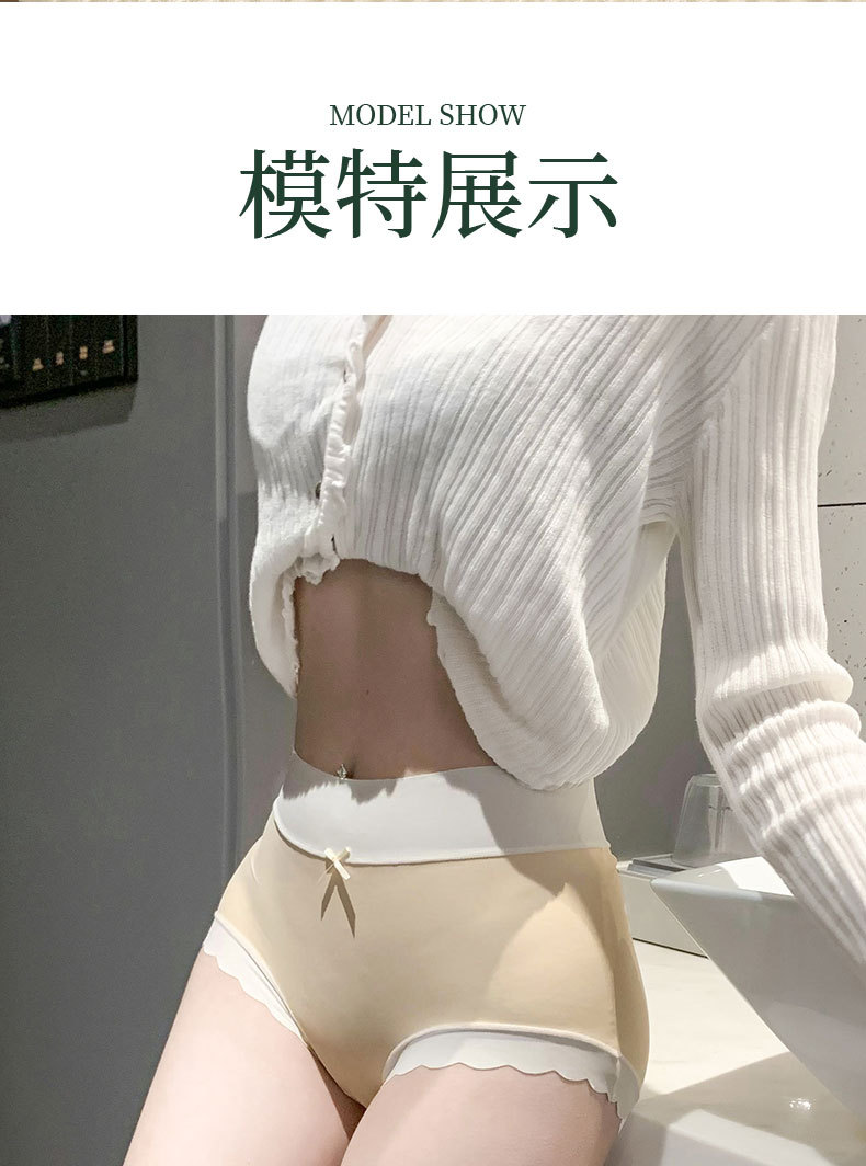 One-piece seamless ice silk mask, shorts, women's underwear, women's antibacterial all-pure cotton crotch contrasting color waist and head, cool and breathable