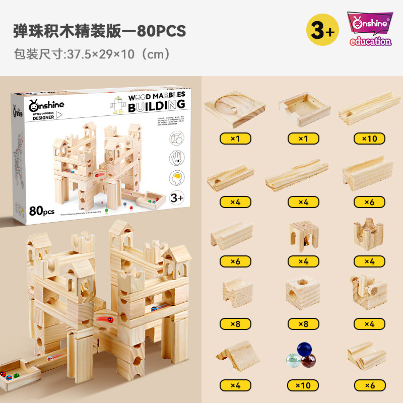 Onshine brand wooden marble track building blocks, children's educational assembly ball building blocks, solid wood assembly building blocks