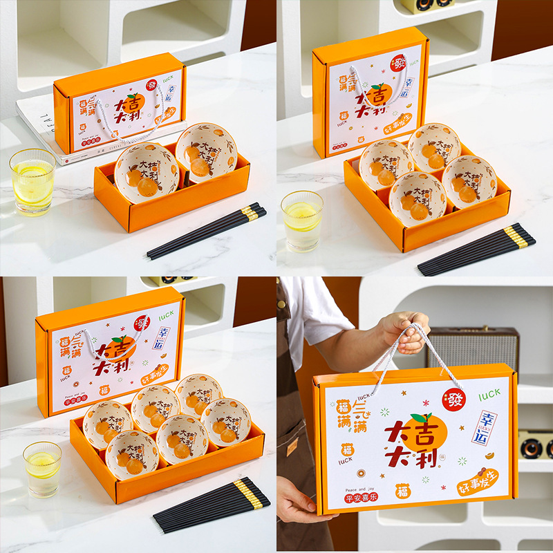 Opening event ceramic bowl and chopstick set gift box, practical souvenir, creative small gift, rice bowl eating gift set batch