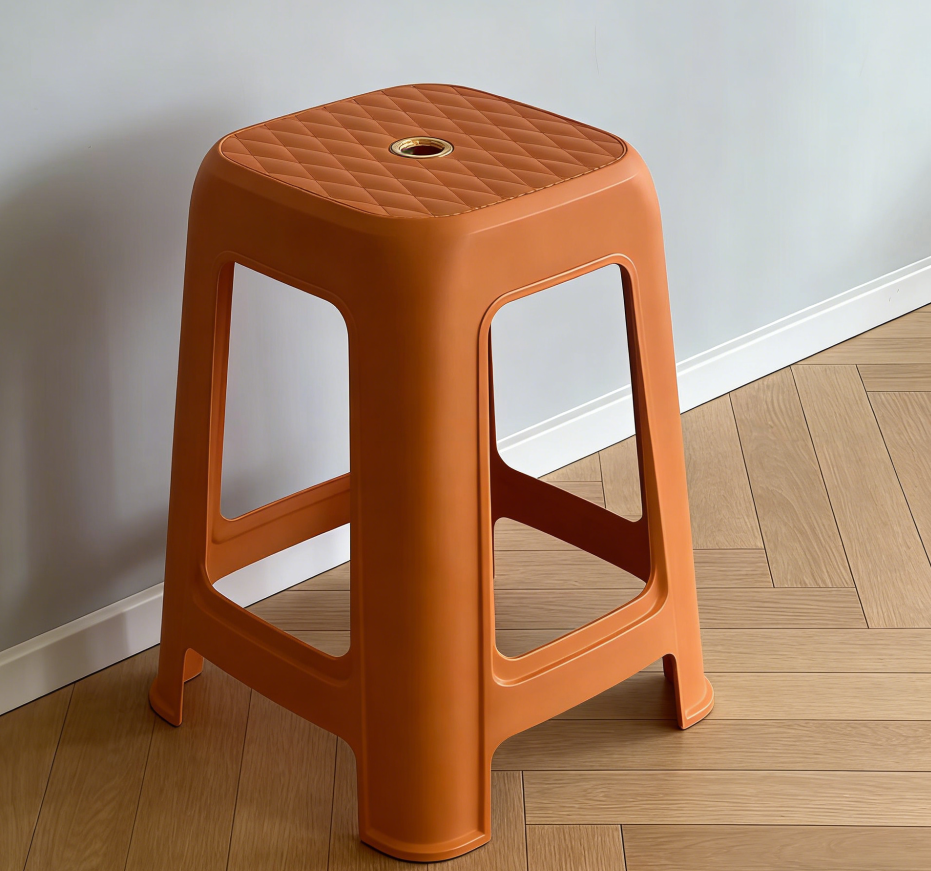 Orange stools can be stacked for household living room, kitchen, dining table, square stools for eating, anti-slip, thickened and sturdy plastic high stools wholesale, high stools wholesale