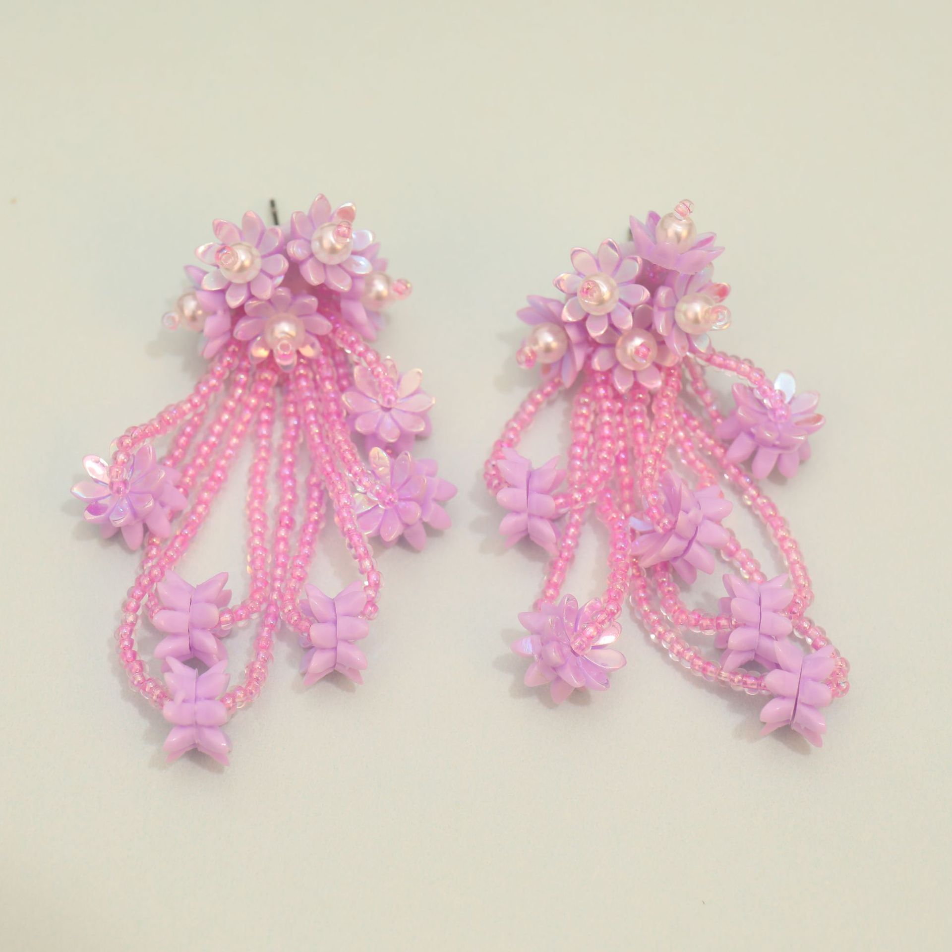 Original and niche design of oil painting shell garden, super fairy-like French flower succulent tassel earrings, colorful summer