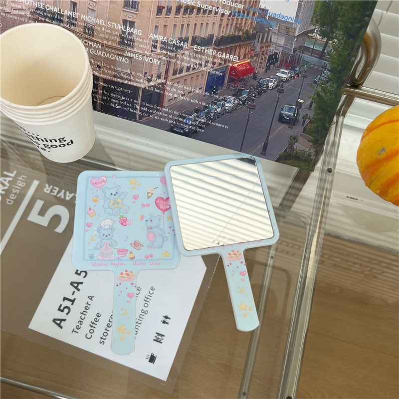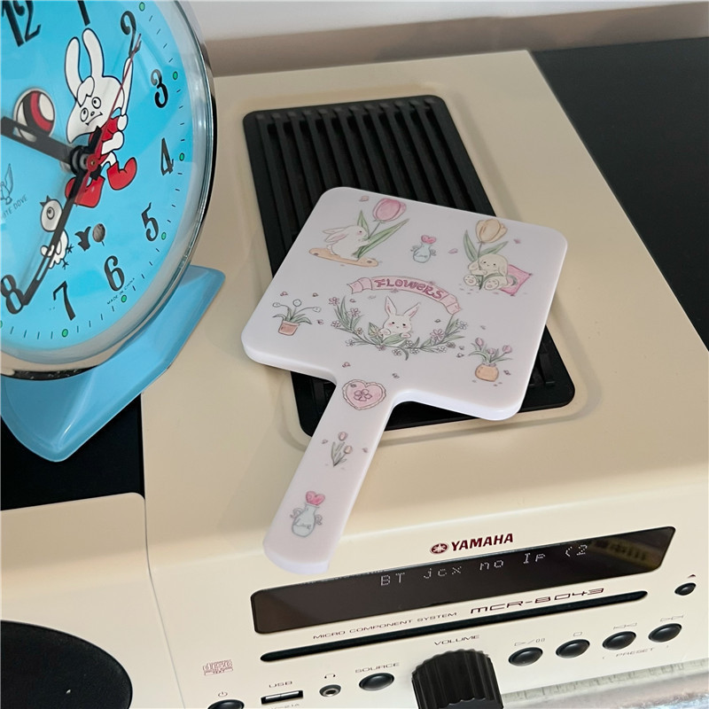 Original design beige tulip rabbit makeup mirror, portable student makeup mirror, high-definition portable mirror, small mirror