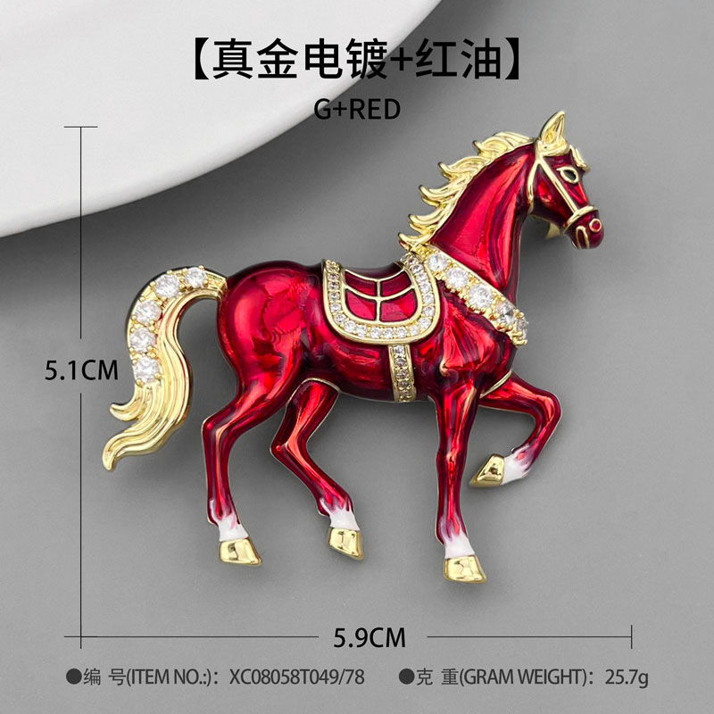 Original design: Good Luck right away Enamel Oil droplet Horse brooch with a high-end feel, copper alloy real gold electroplated brooch and brooch