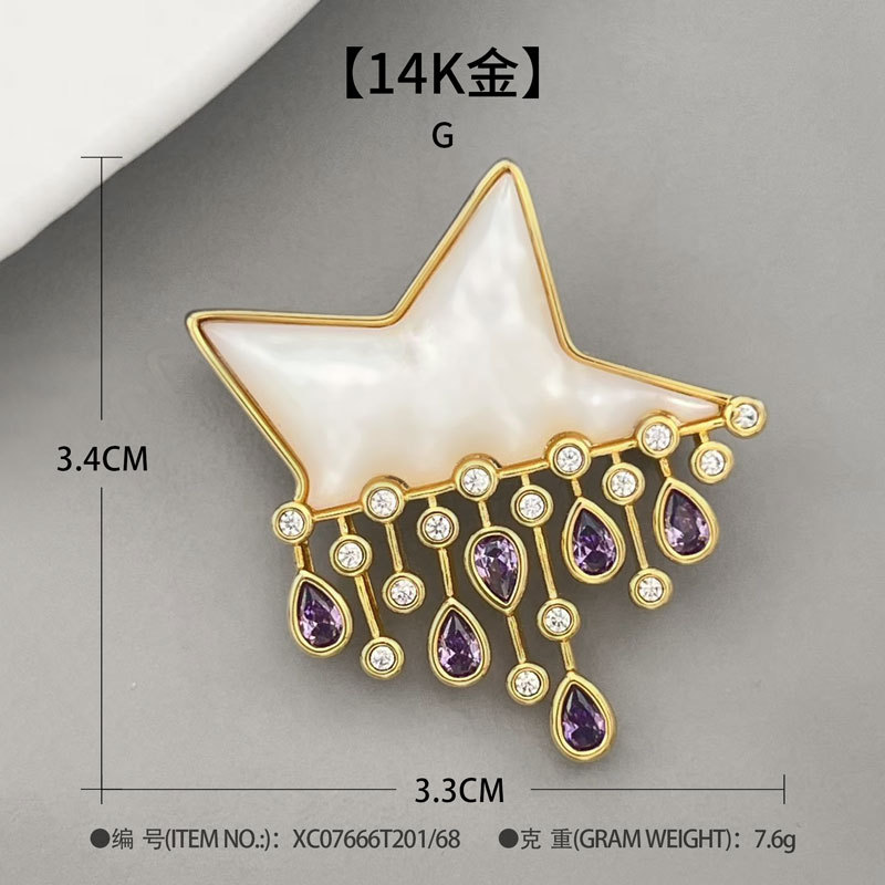 Original design natural mother-of-pearl star raindrop brooch, fashionable, light luxury, dynamic design, delicate and versatile brooch