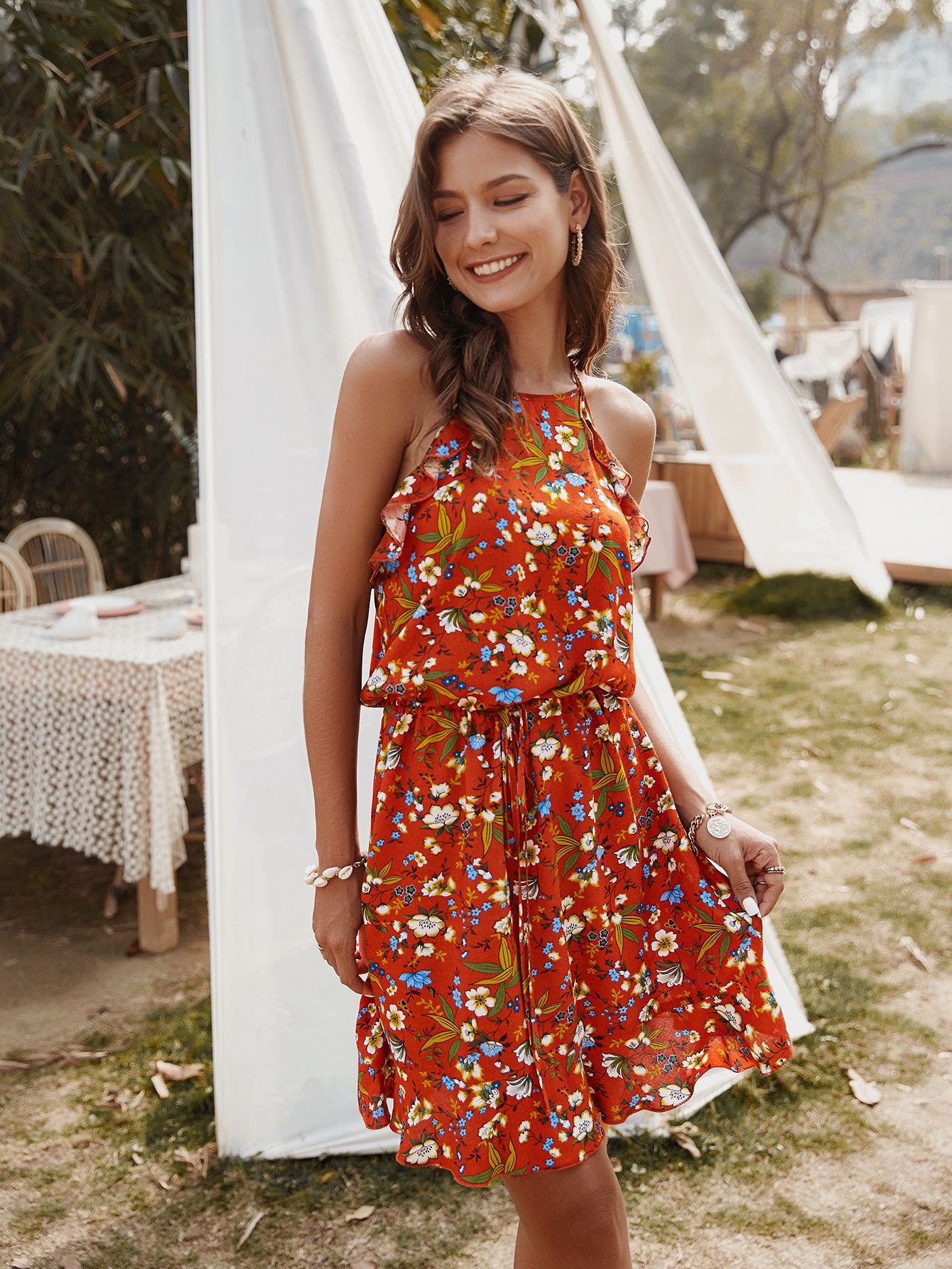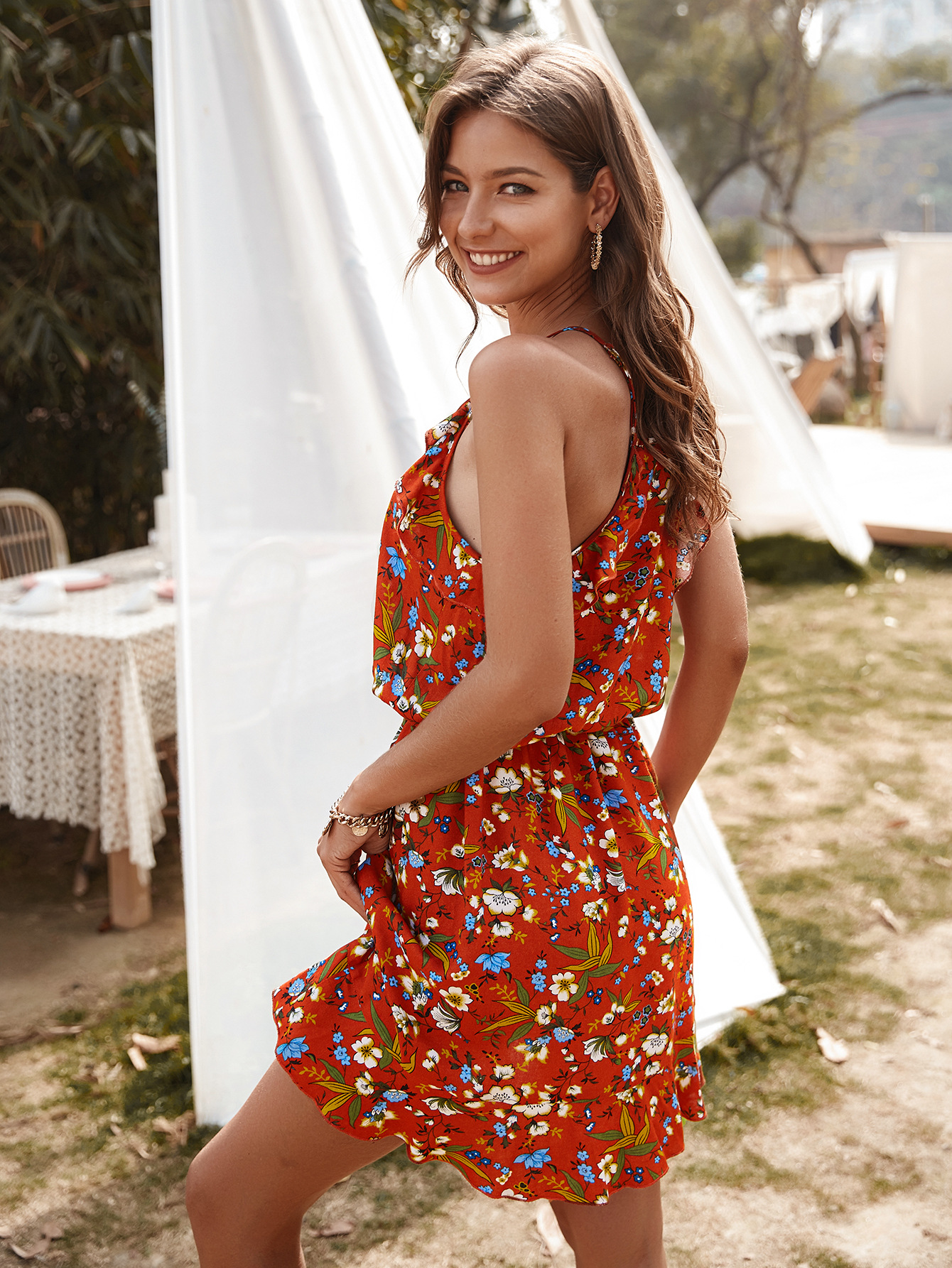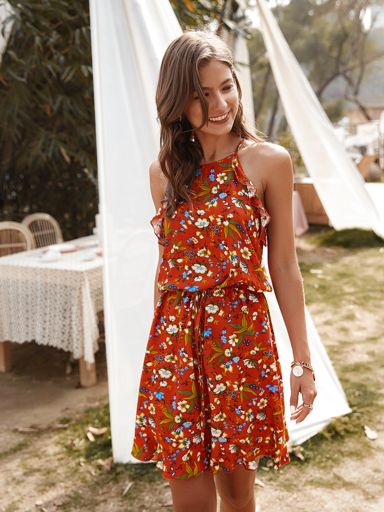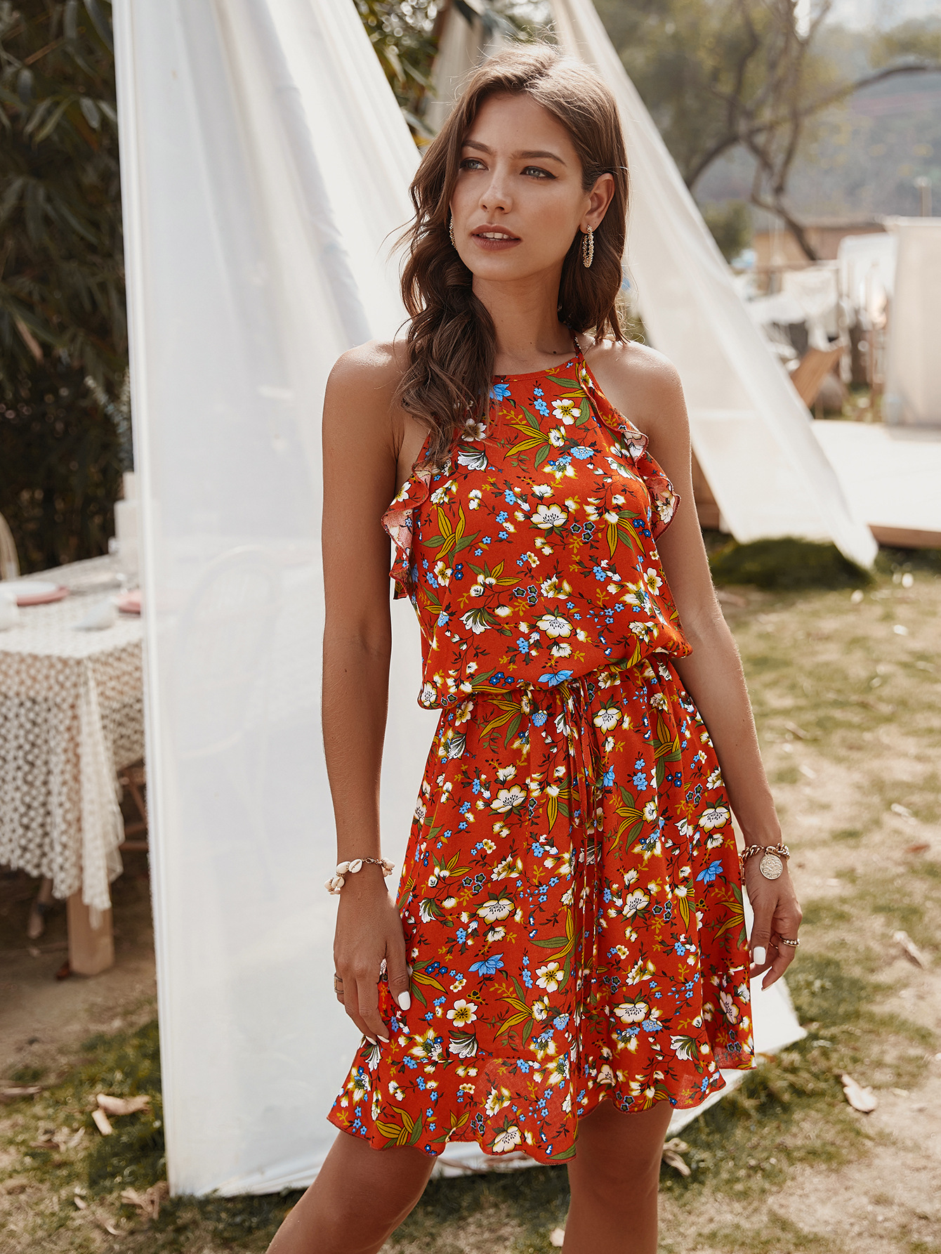 Original design of European and American internet-famous printed dress 2020 casual and versatile dress Amazon bestseller women's clothing