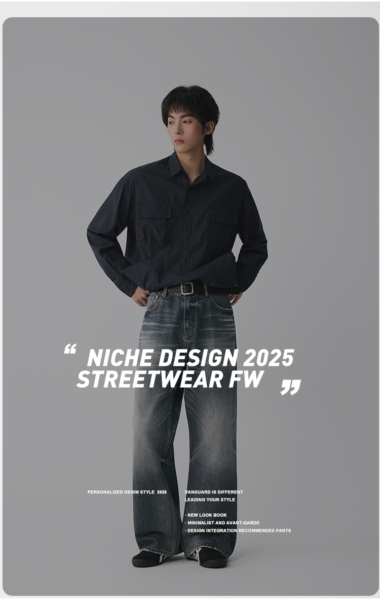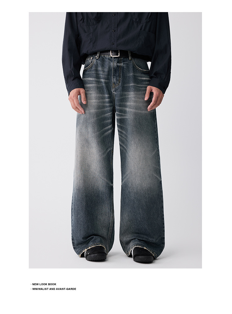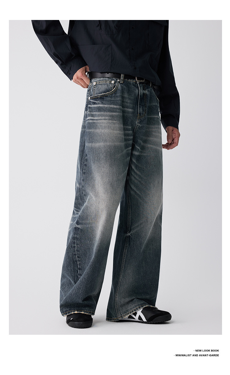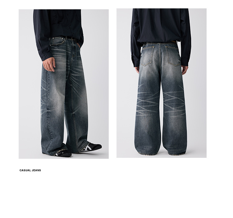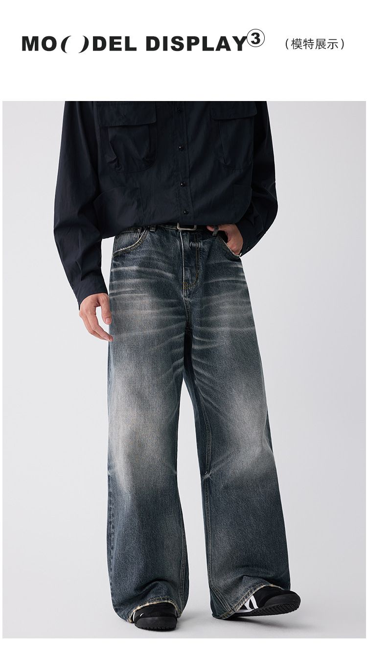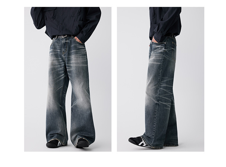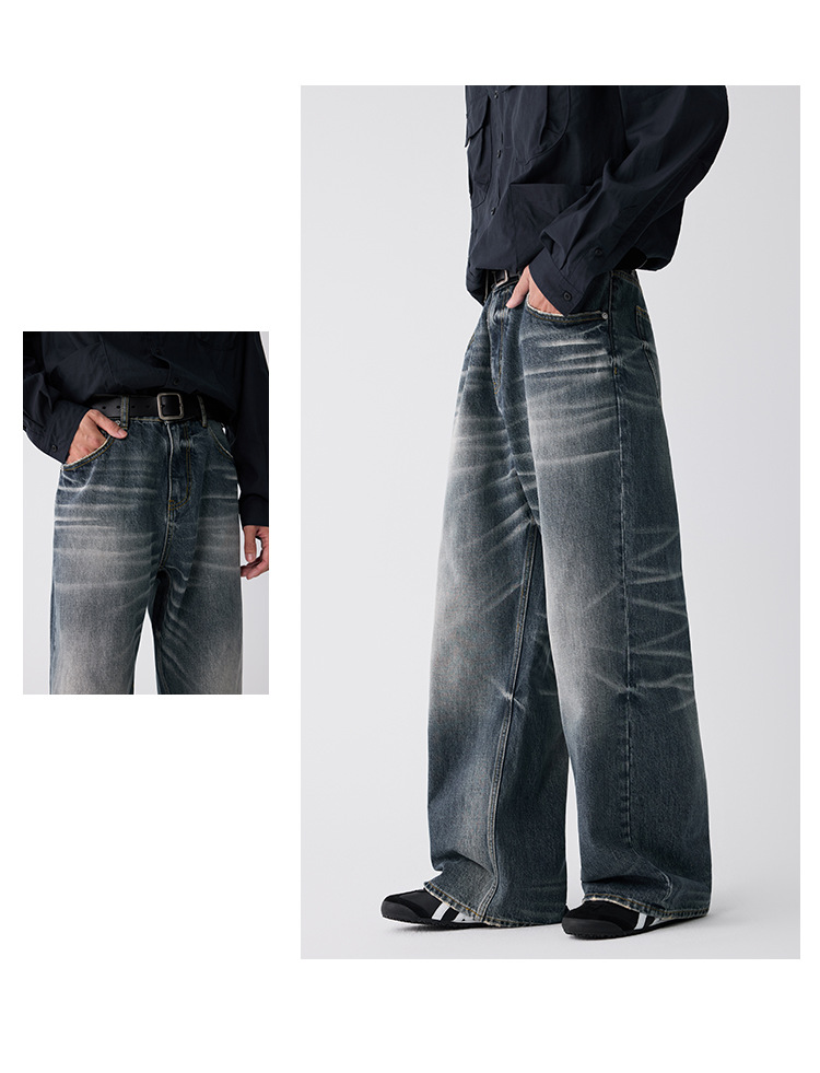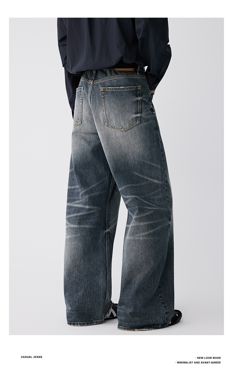 OTTB Men's Wear: American heavyweight three-dimensional cat beard jeans for men, high-end quality cleanfit loose bull King pants