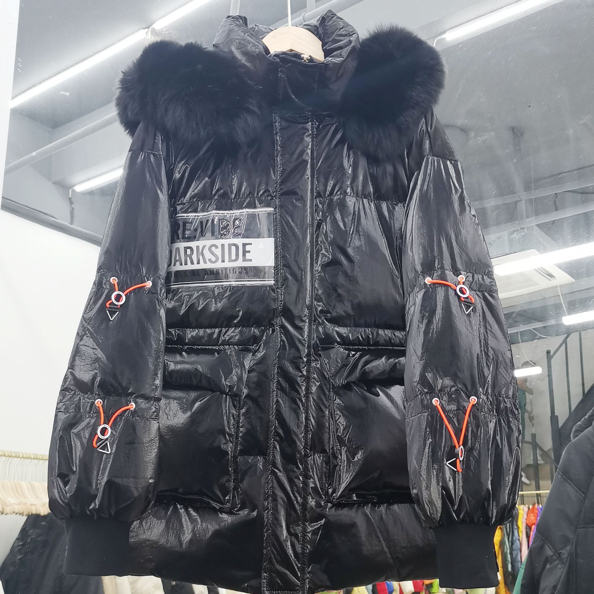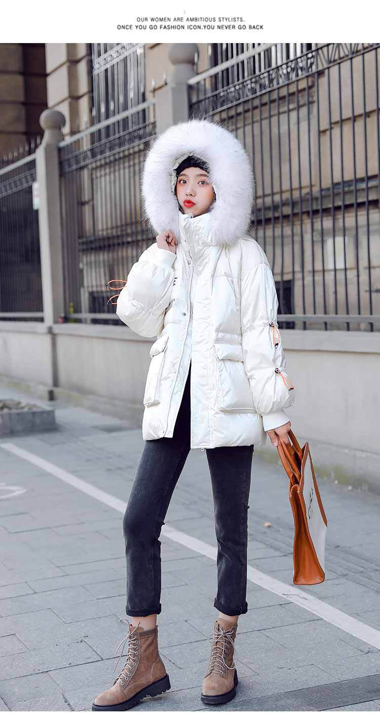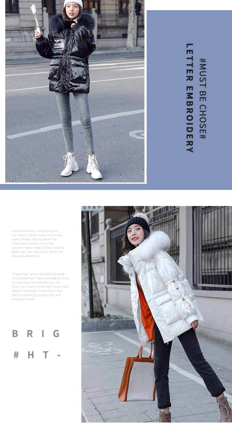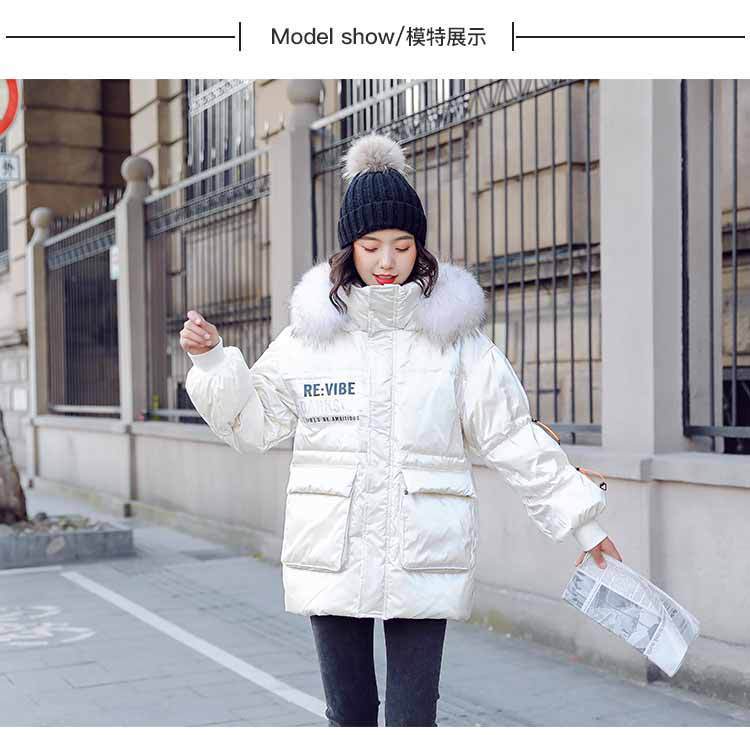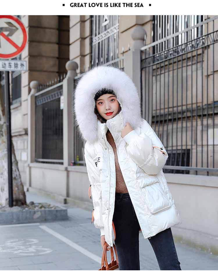Out-of-season new Korean style patent leather glossy thickened loose 貉子 large fur collar drawstring personalized down jacket for women 's fashion
