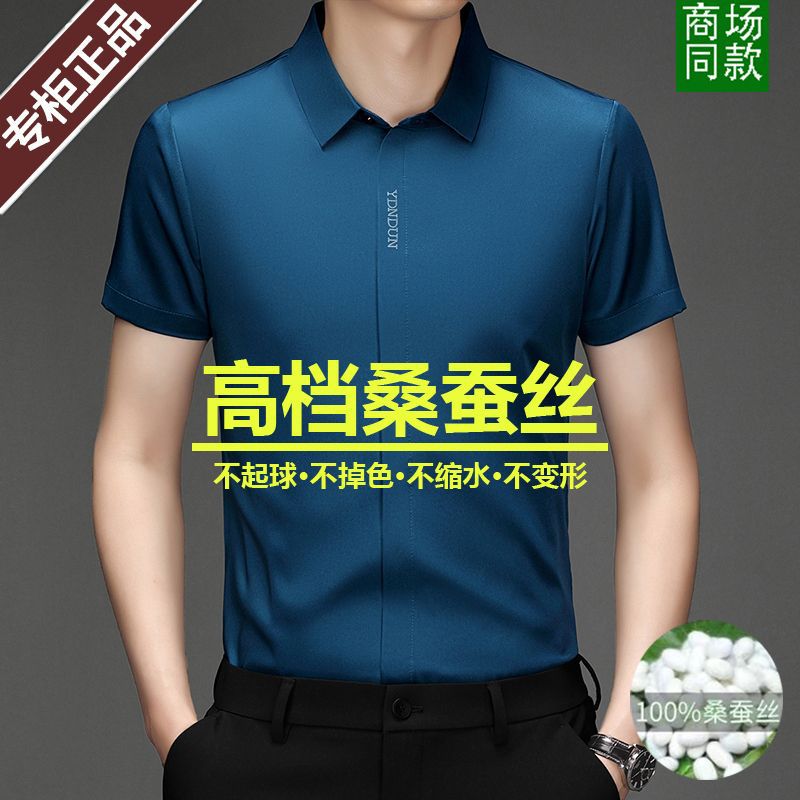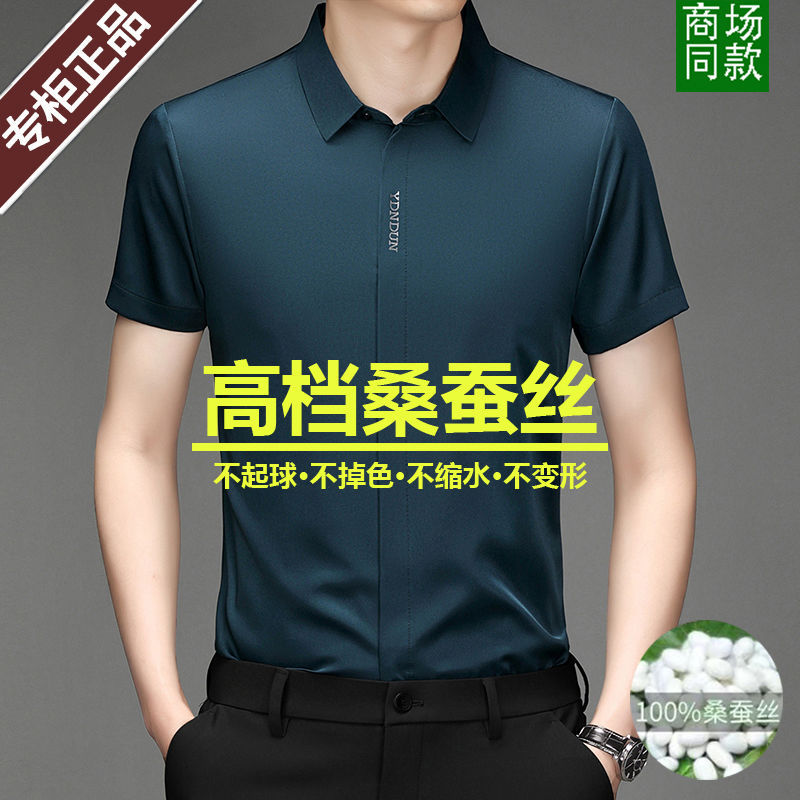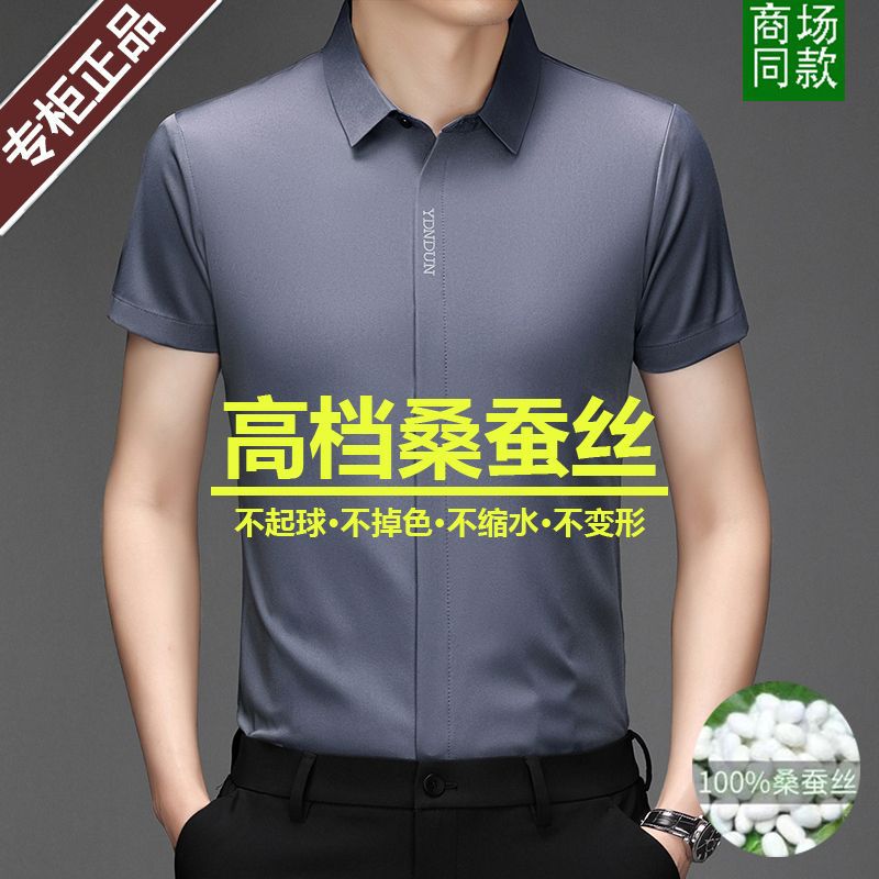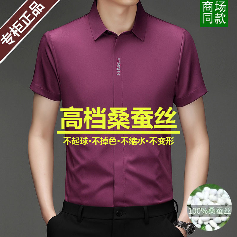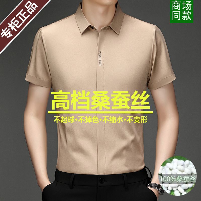Out-of-size special offer: Summer mulberry silk short-sleeved shirt for men, high-end, seamless, one-inch shirt with good drape, no need for ironing, elastic and delicate