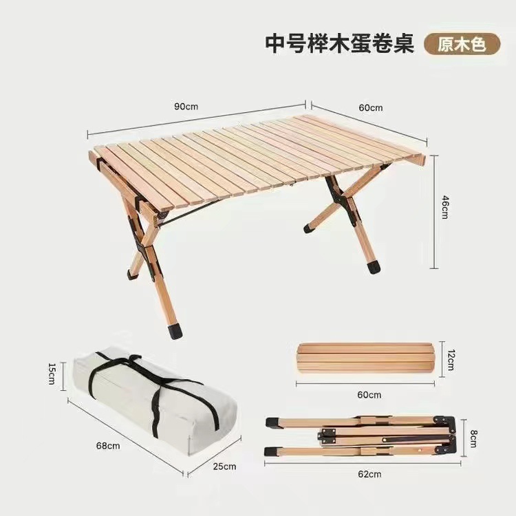 Outdoor camping folding table, beech egg roll table, pine egg roll table, camping table, picnic egg roll table, barbecue grill, picnic