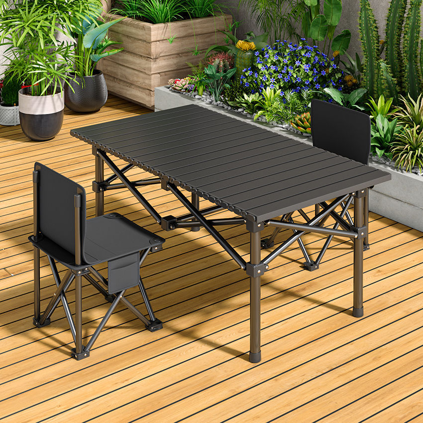 【 Four-person Instagram 】58 high black folding chairs *4+95 sand-black long table + free bag