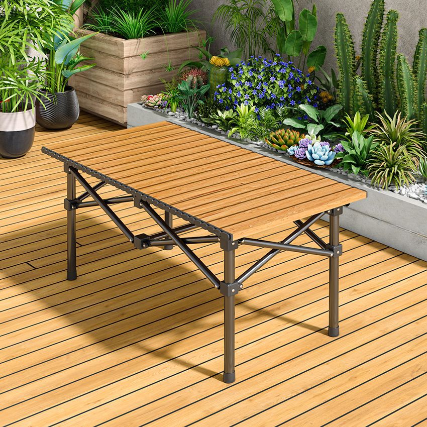【 Larger 】 Carbon steel 95 wood grain long table + bag