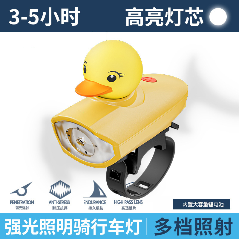Outdoor mini yellow duck children's cycling light cartoon easy installation children's night cycling light strip horn bicycle light