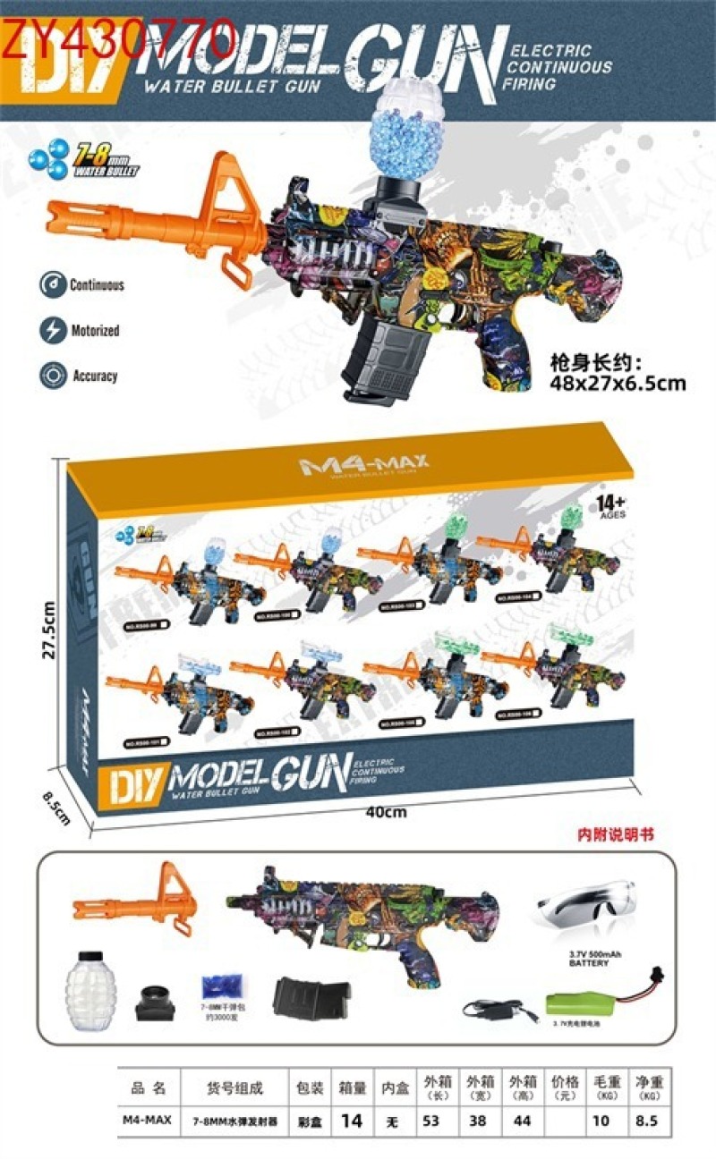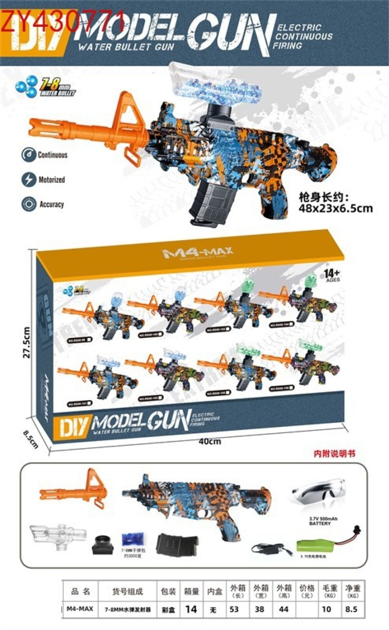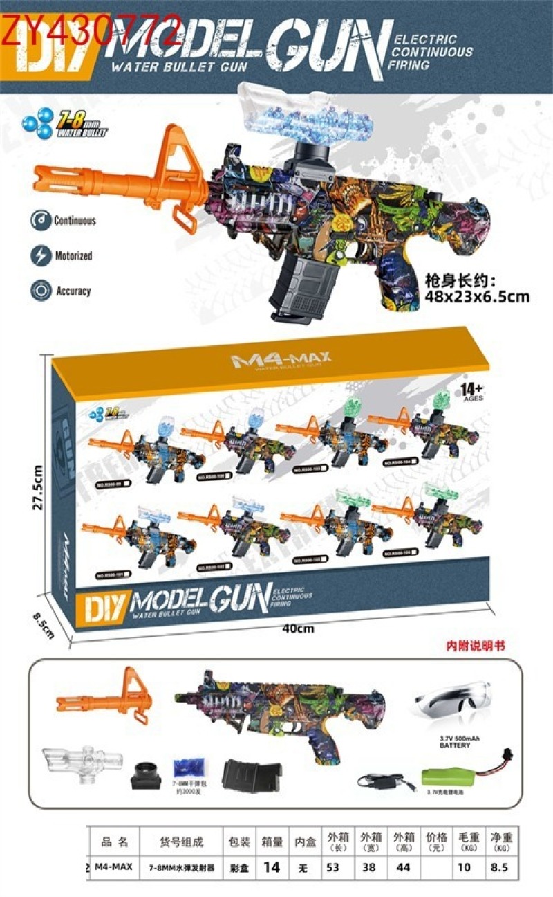 Outdoor toys for children and boys, PlayerUnknown's Battlegrounds (PUBG) game, M4-MAX manual-automatic luminous version /M4-MAX manual-automatic gunner water bullet gun, water bullet gun, children's toys, toy gun, toy water gun