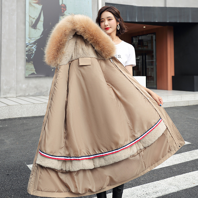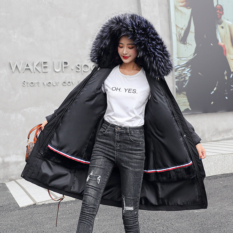 Pai Overcame Women's mid-length, large-sized, detachable, Korean-style loose cotton-padded jacket 2021 new style, knee-length cotton-padded jacket, winter cotton-padded jacket
