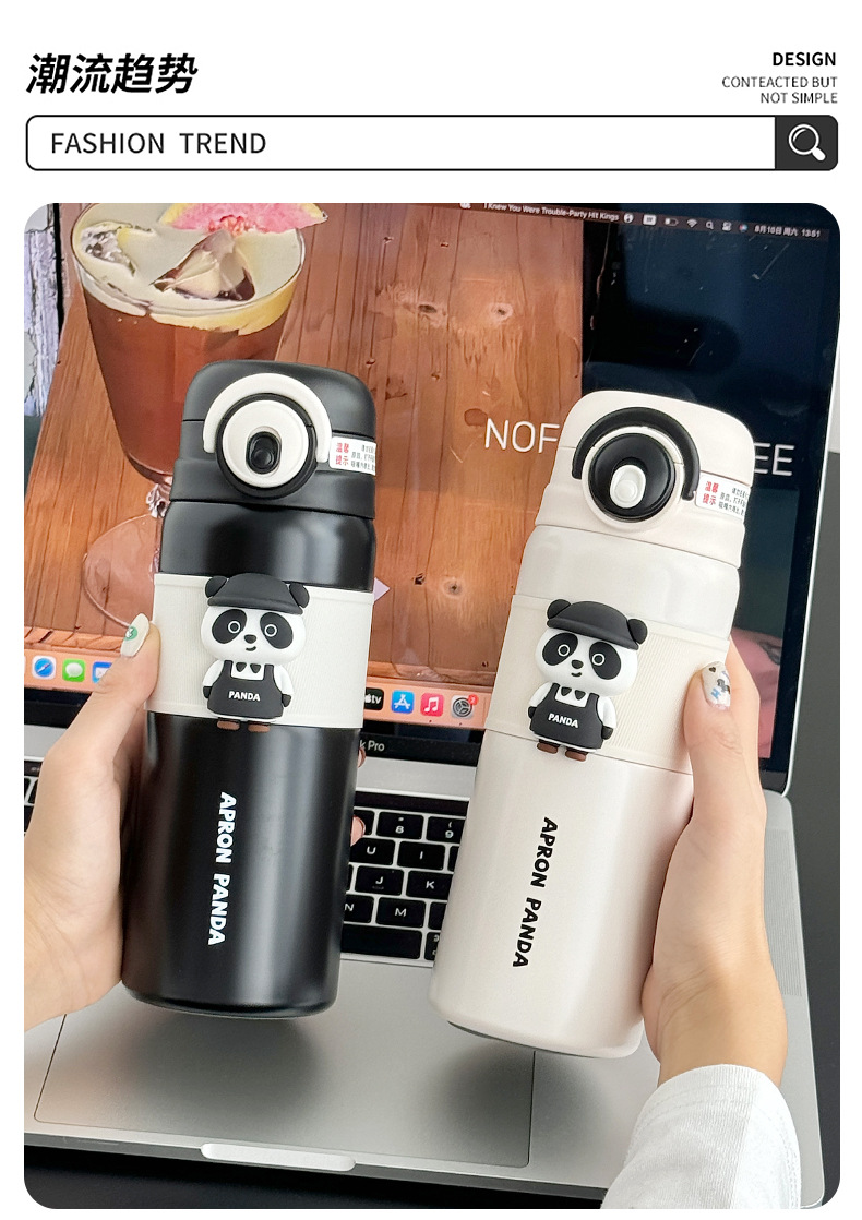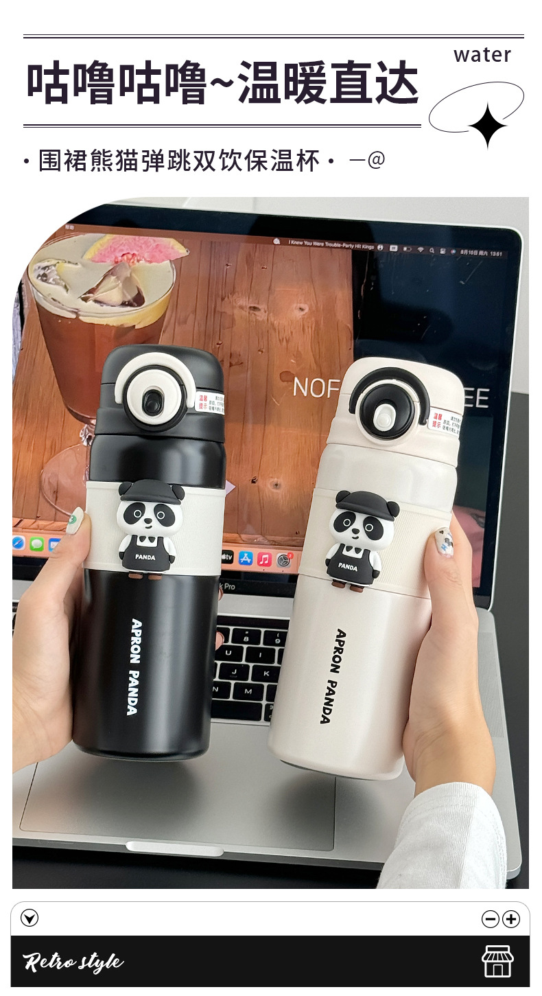 Product Name: Apron Panda Bouncing Double Drinking Thermos Cup
