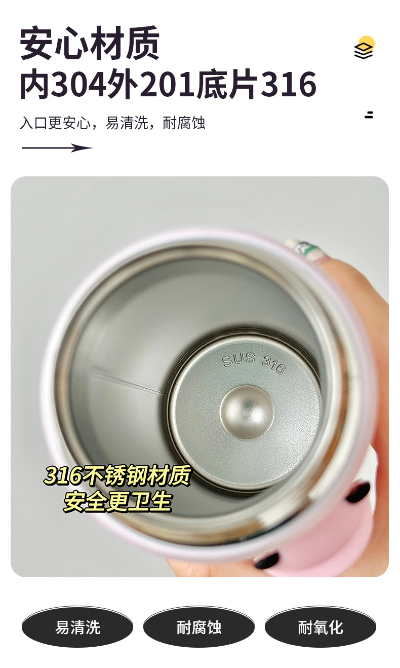 Material: Inner bottom 316 stainless steel + inner cup 304 stainless steel