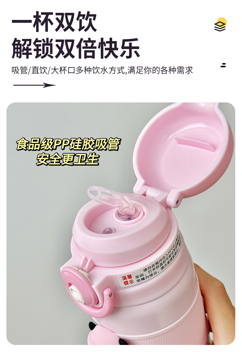 Panda water Cup, cute straw cup for girls, portable for students, children's double-drinking cup, special for boys to go to school wholesale