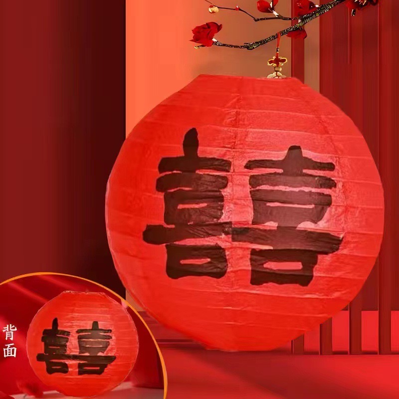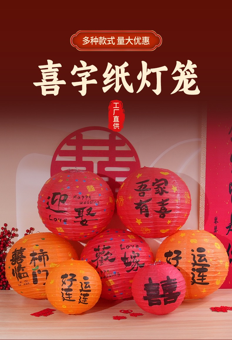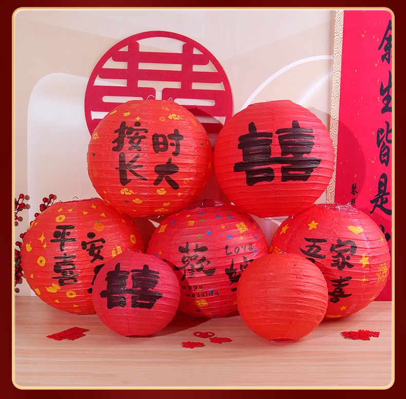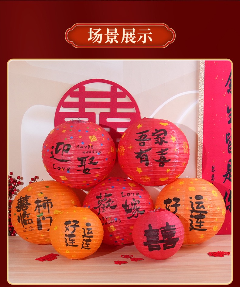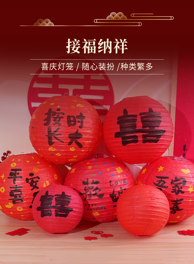 Paper lanterns with the characters "happiness" and "blessing" for wedding decoration, ancient-style and trendy hanging ornaments, and popular Chinese-style wedding photo props