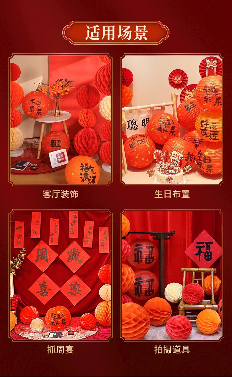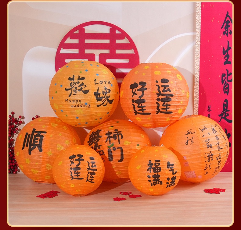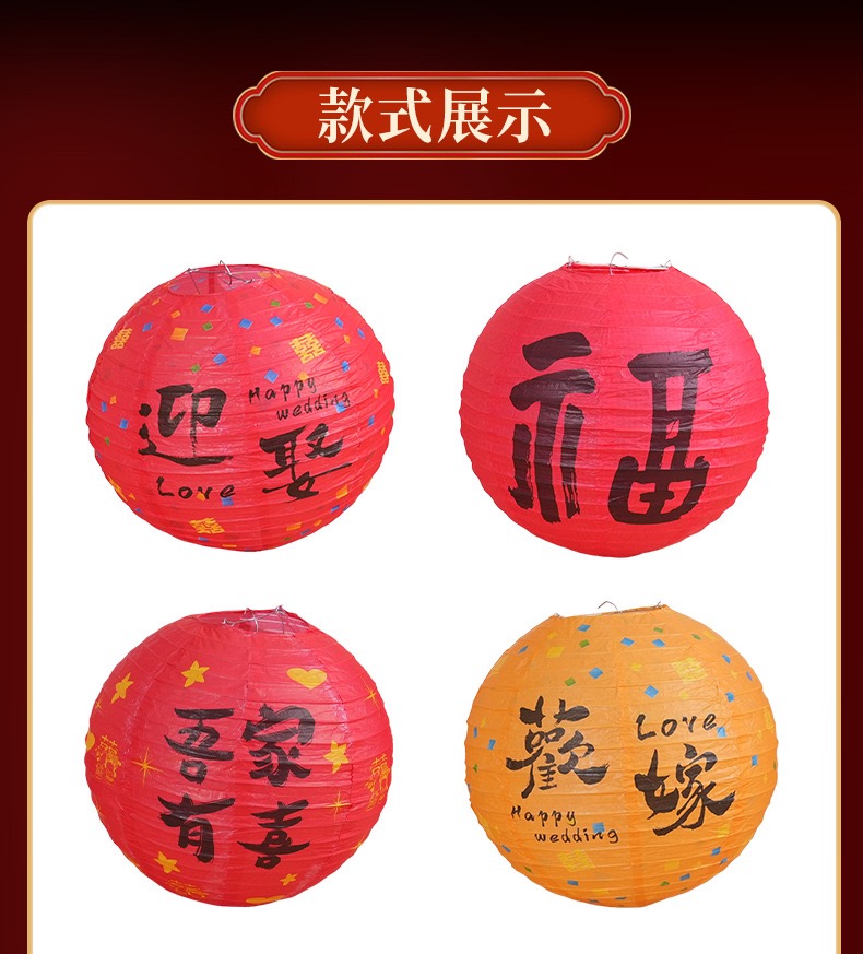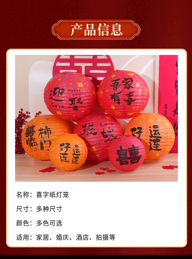 Paper lanterns with the characters "happiness" and "blessing" for wedding decoration, ancient-style and trendy hanging ornaments, and popular Chinese-style wedding photo props