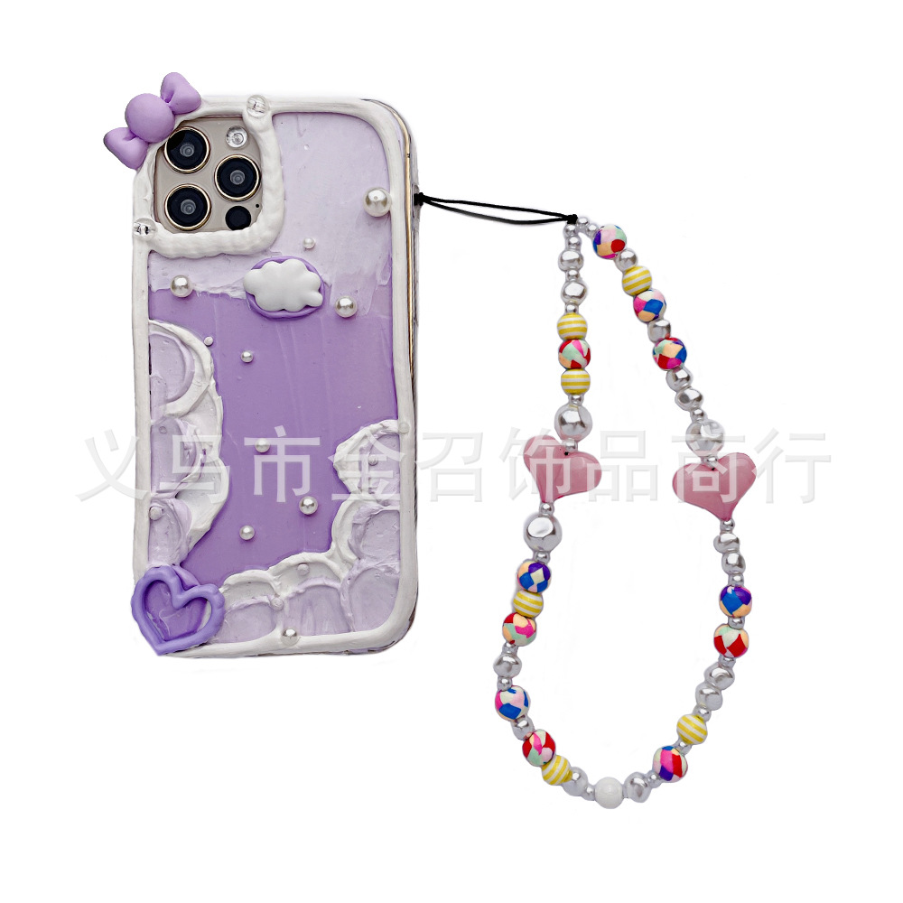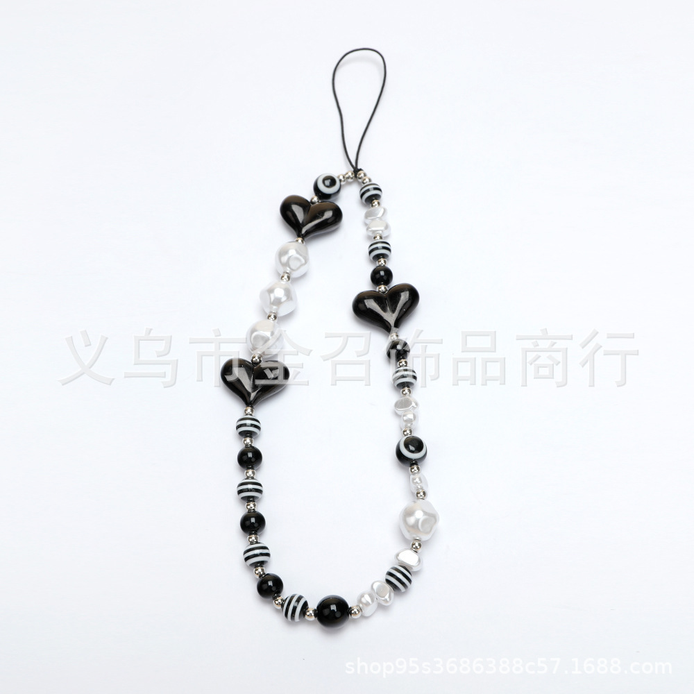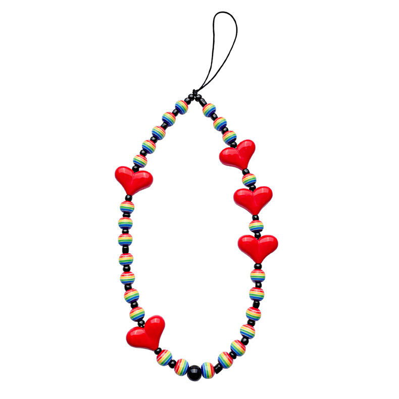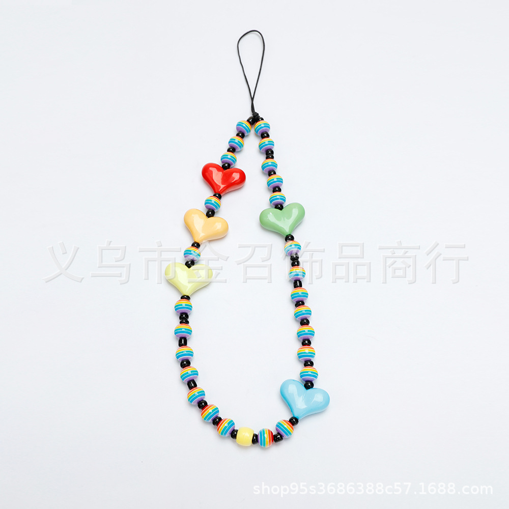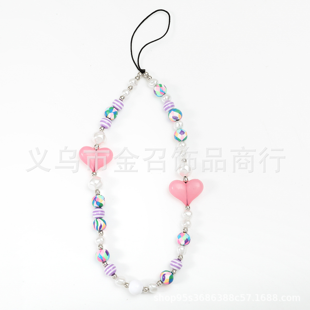 Park Chae-young's same style mobile phone chain, ins pink beaded pendant, heart-shaped heart pendant, lanyard, short wrist, Korean version for women