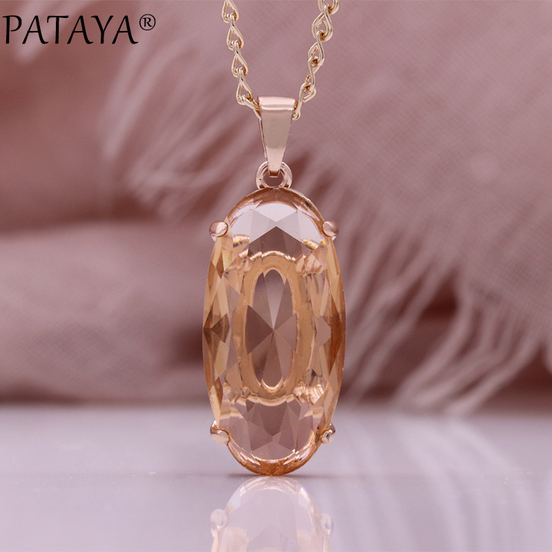 PATAYA585 Rose Gold electroplated earrings and rings Set, Cross-border direct supply, multi-color zircon style set