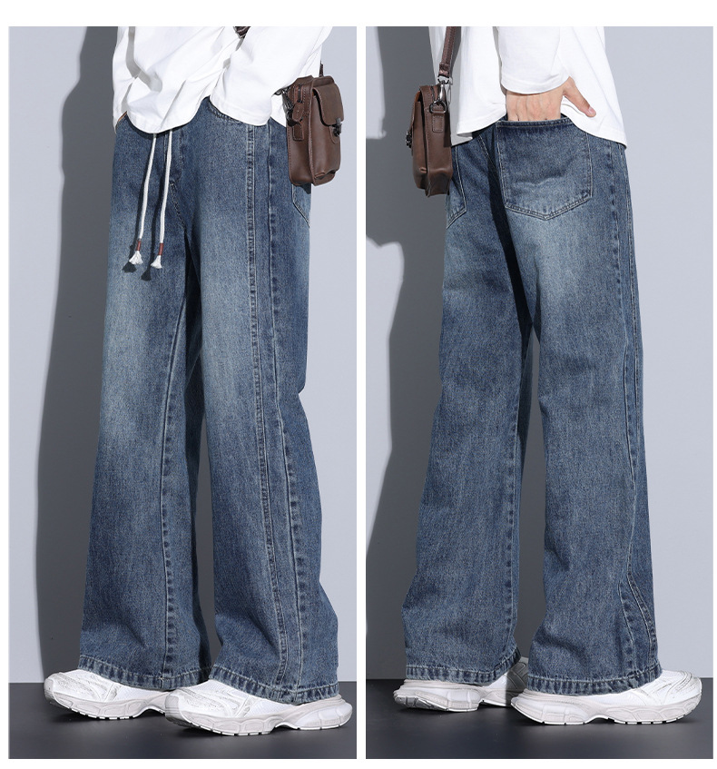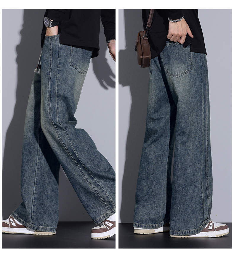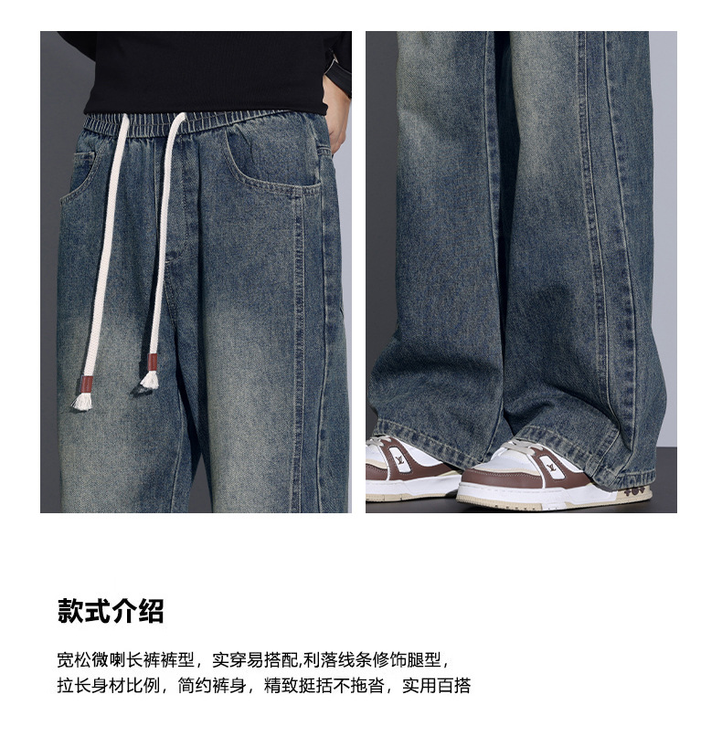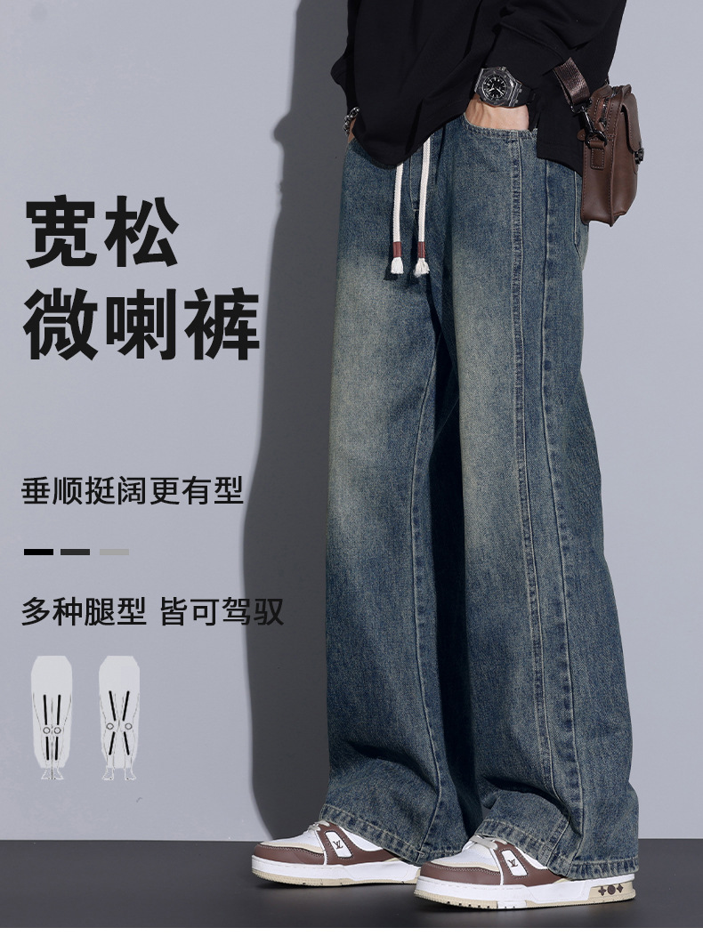 Paul's autumn and winter collection of fleece, thickened, slightly flared jeans for men, American loose, cool and versatile straight-leg long pants for men